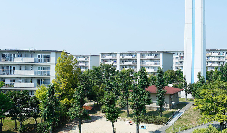 小高い丘の上に立つ緑溢れた「新多聞団地」