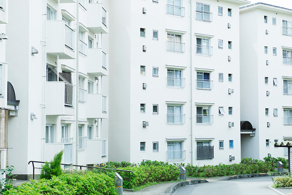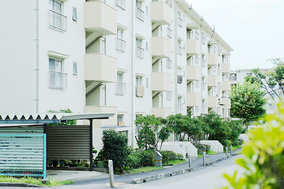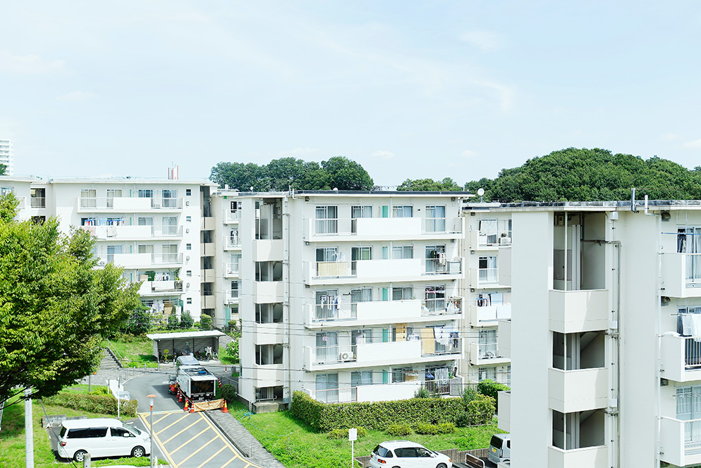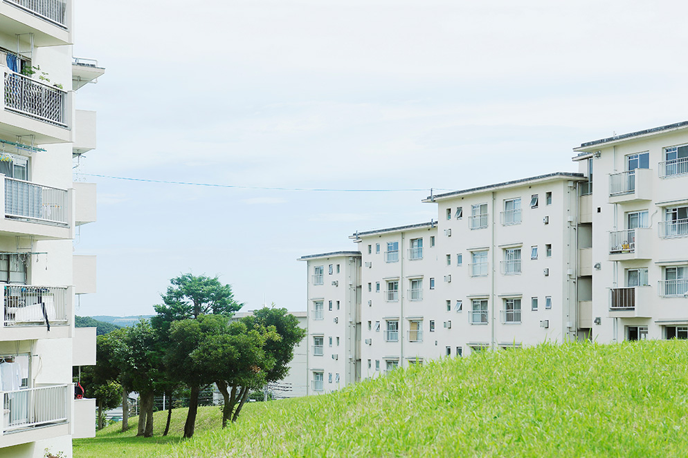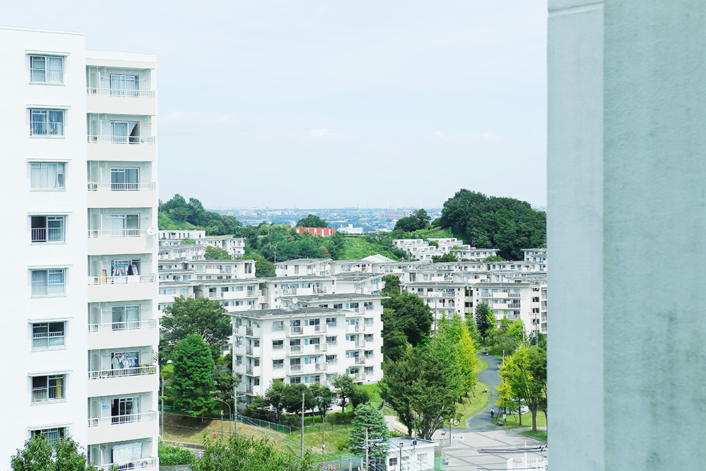 見晴らしの良い丘陵地帯を臨む団地暮らし