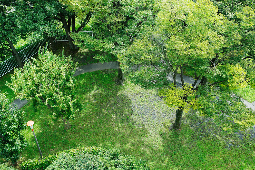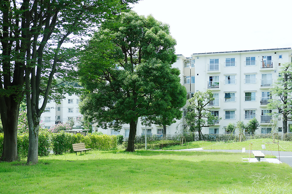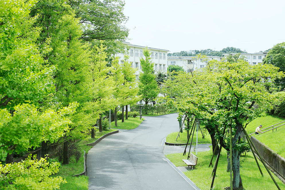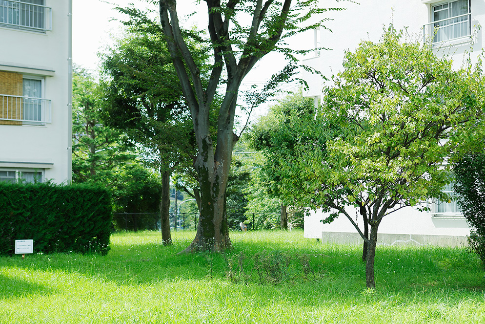 豊かな緑に囲まれて植栽も丁寧に手入れされた団地内。少しアップダウンのある敷地内をゆっくり散歩するだけでも四季折々の緑に触れられて心地いいです。