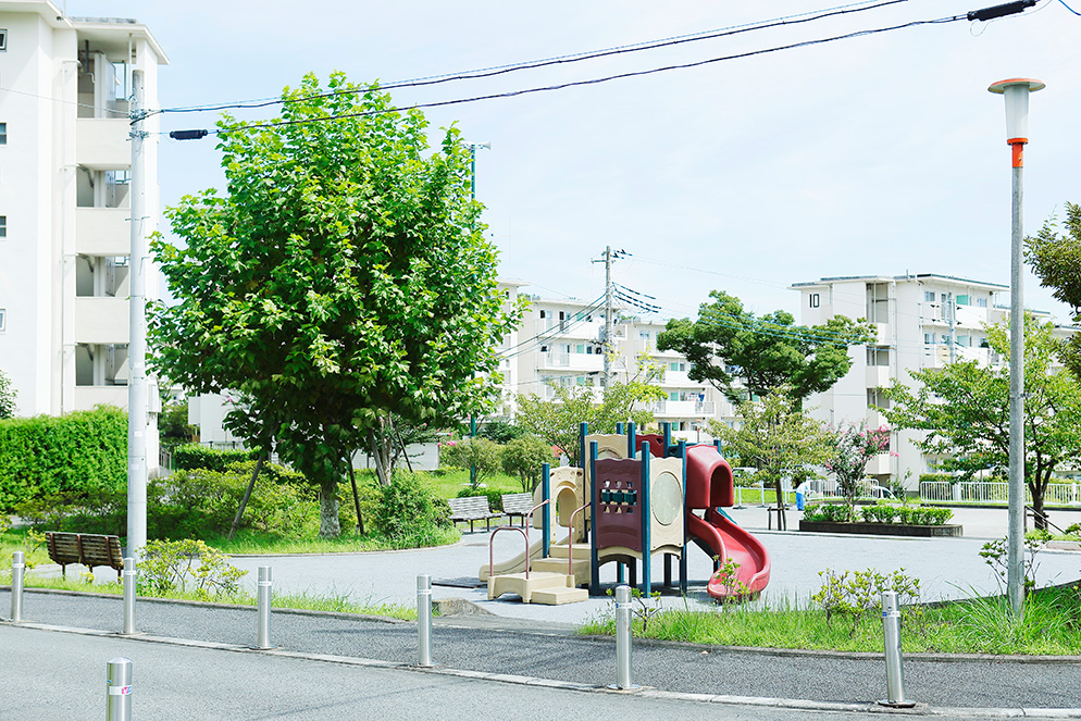 百草団地の敷地内には保育園と幼稚園が1つずつ。さらに周辺には小学校や中学校もあり、子育てするにはぴったりの環境です。さらに百草団地は歩道と車道が分かれている「歩車分離」が徹底されており、放課後に子どもが広場で遊んでも車が飛び出してくることなく、安全に遊べます。