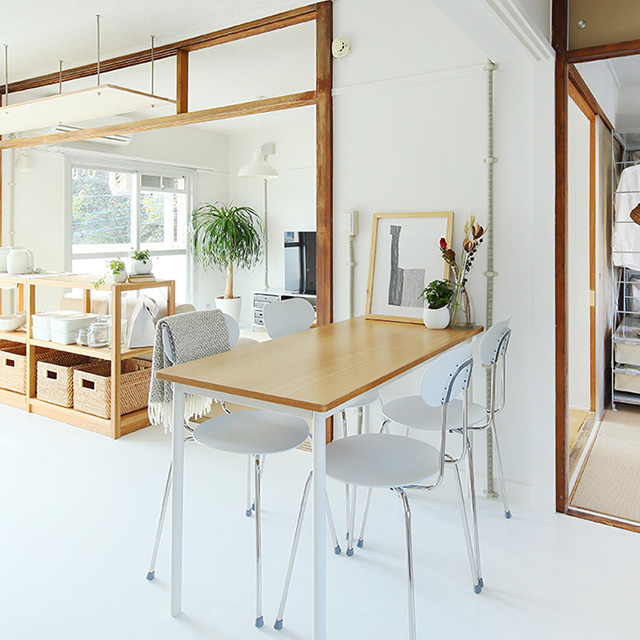 さて、そんな百草団地にある、MUJI×UR団地リノベーションプロジェクトのお部屋は、中層住棟の2DKと2LDKをリノベーションして、開放感のある空間に仕上げました。2DKのMUJI×UR plan31は「キッチンを対面型にも独立型で個室と仕切ることもできる自由度の高い暮らし」、2LDKのMUJI×UR plan35は「どこからでも南北に風が通るLDK空間のある暮らし」をコンセプトにしています。