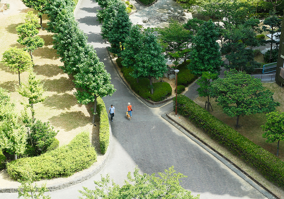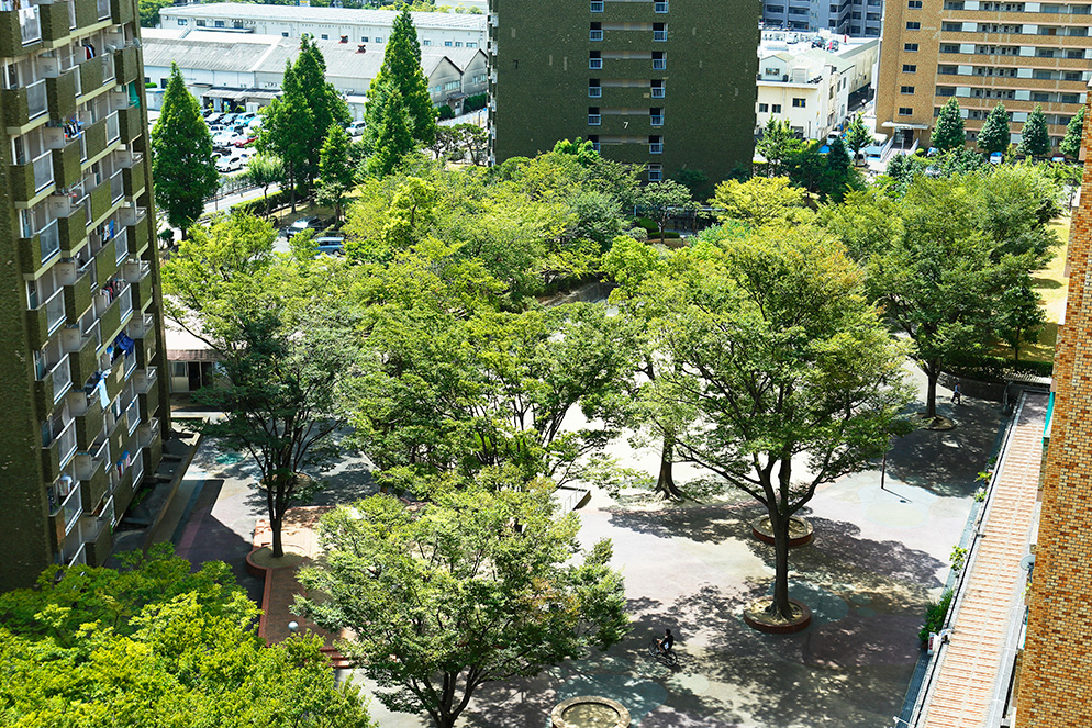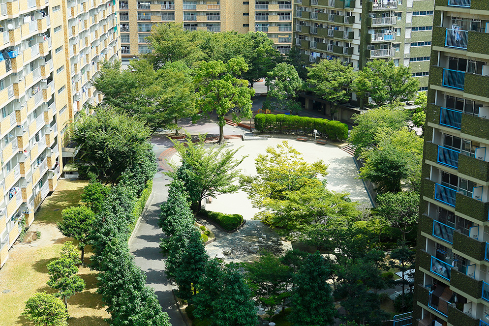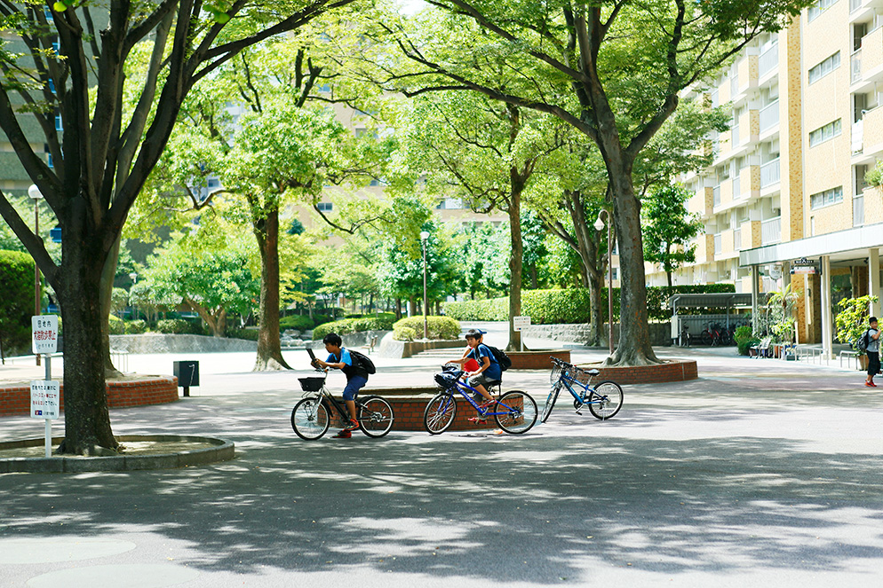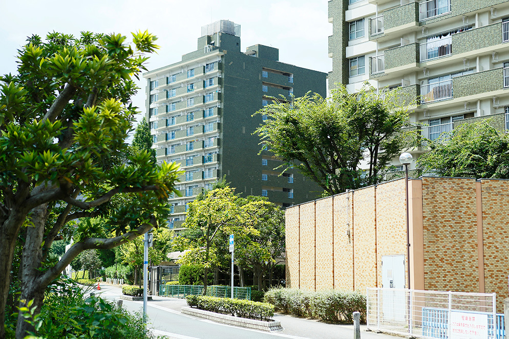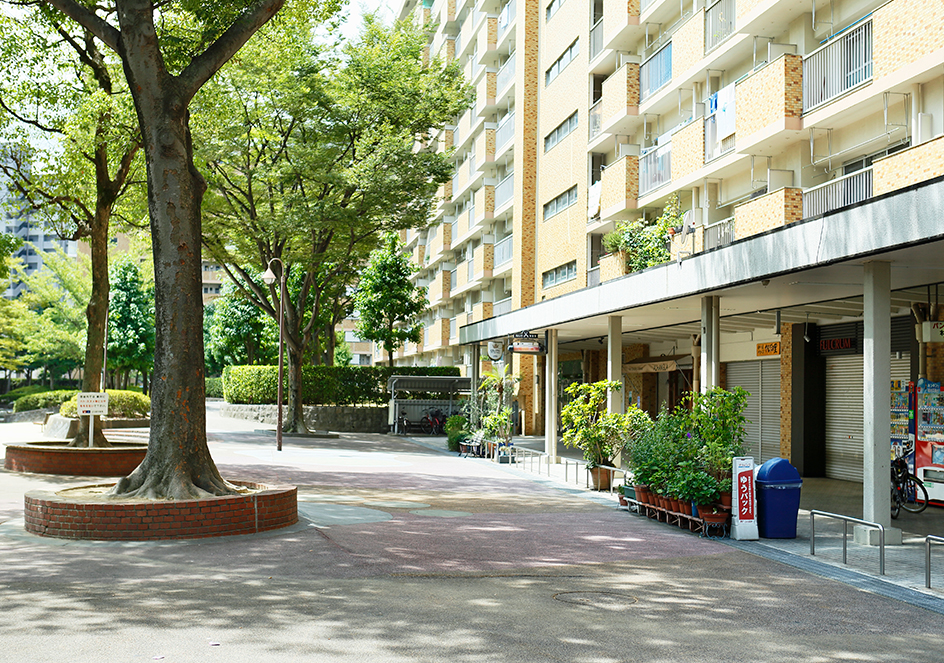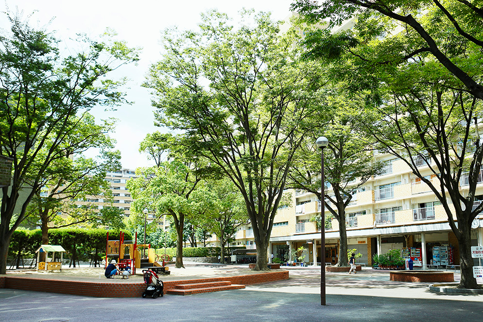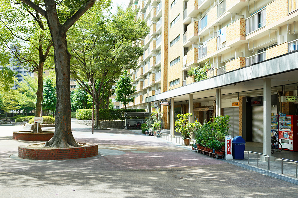 4号棟のそばには、住まいセンター・現地案内所・銀行などもあります。住まいセンターが団地のそばにあれば、困った時にすぐ相談できるので心強いもの。さらに嬉しいことに、8号棟の真横には保育園があり、その隣にはスーパーがあるのです。団地周辺の生活環境が整っているだけでなく、団地区画内の環境もしっかり整っている。こんなにも揃った理想的な状況、一度住むと離れられなくなりそうですよね。