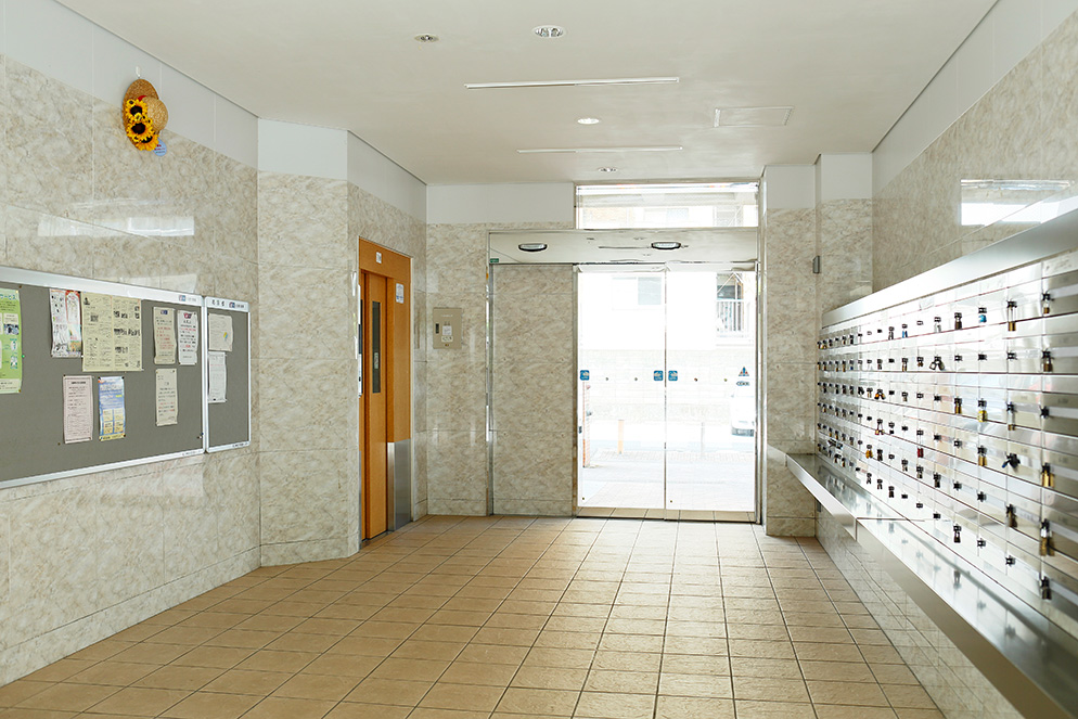 金田一丁目団地は、4号棟から9号棟までの全6棟から成り立っており、総戸数は743戸。エレベーター付きのマンション型で、10階前後の高さのビルが、中心にある運動場付きの子供広場を囲むように並んでいます。緑が豊かで、子どもが安全に遊べる空間づくりがなされています。昭和48年から昭和51年にかけて建設されたものですが、随時改修作業が施されているため、築年数を感じさせません。とくに各棟のエントランス部分は新しく、モダンな造りとなっています。