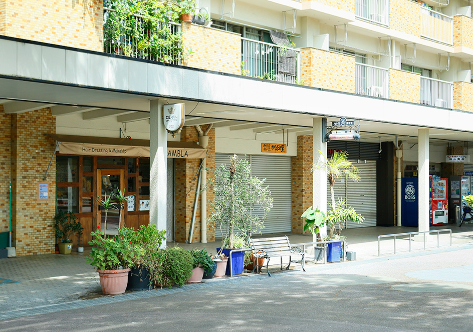 6号棟の1階には、複数の商店が軒を連ねています。イートインもテイクアウトもできるお惣菜屋「団らん処 和菜屋」、パンやお菓子を販売するコンビニのような小さな商店、介護のデイサービス、美容室、薬局など。「団らん処 和菜屋」さんを中心に、お餅つきイベント・苔玉づくり体験・生け花体験教室など、団地の人たちが交流できるようなイベントを時々開催することもあるそうです。