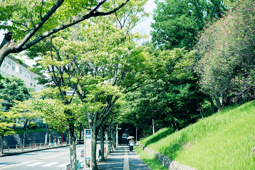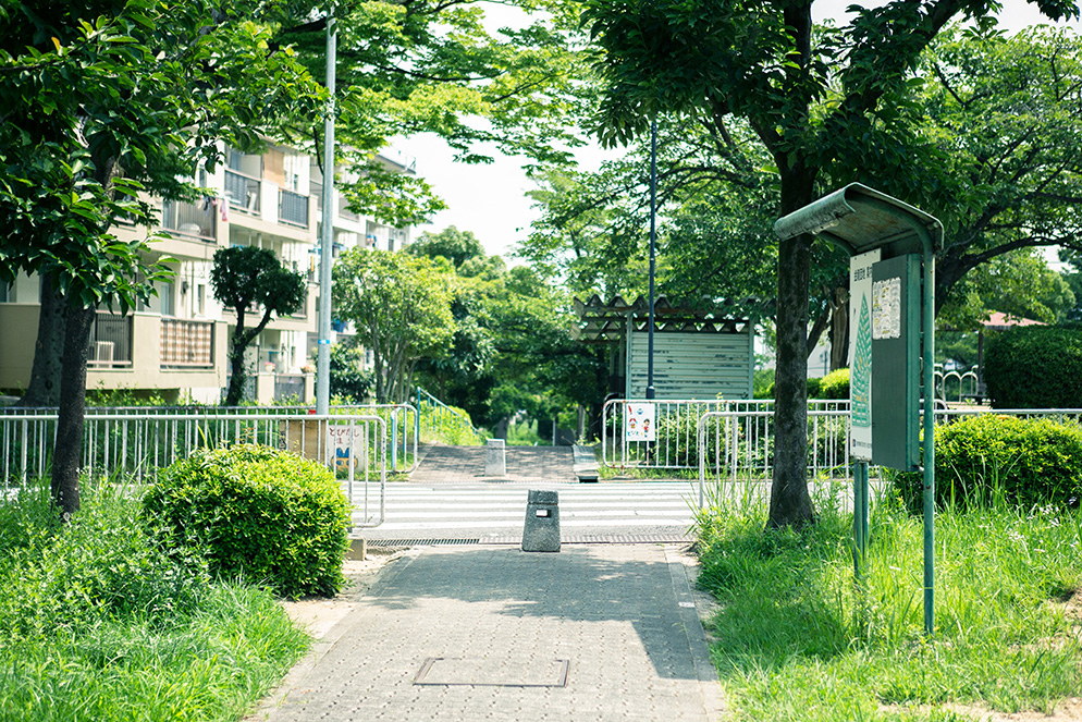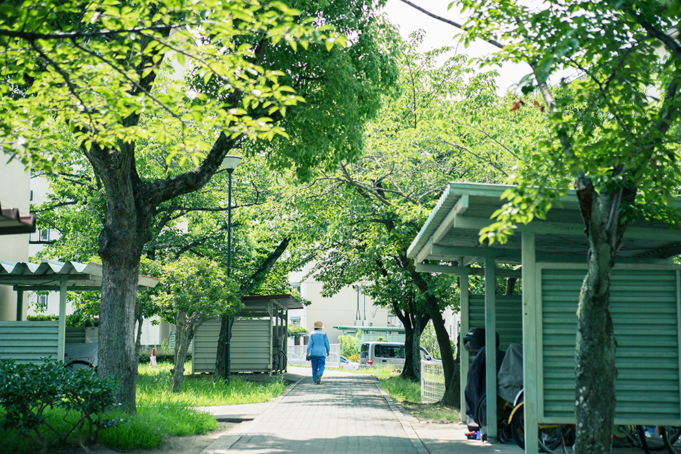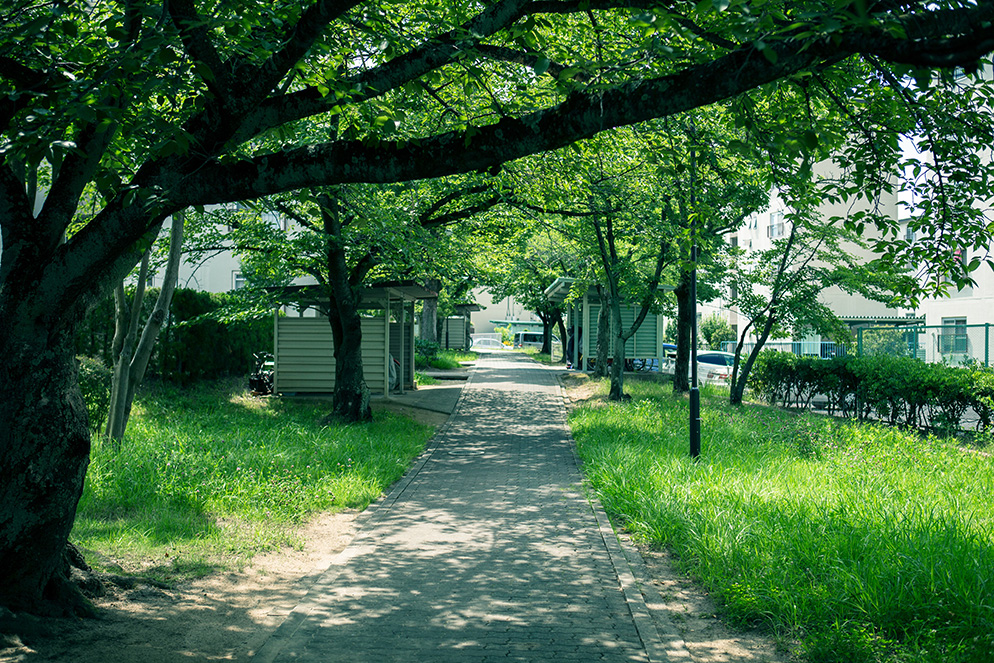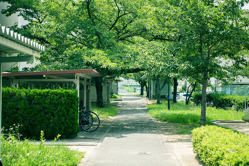 敷地内は緑が充実しており、住棟より背の高い樹々もあります。遊歩道では、木陰のトンネルが涼やかさを届けてくれます。敷地内だけでなく周辺環境も自然に恵まれています。寺池公園は、広大な池に映る金剛山が美しく、春にはソメイヨシノや八重桜も綺麗です。さらに少し足を延ばせば、様々な種類の野鳥が生息する錦織公園を訪れることもできます。お弁当を持って公園でピクニックも良いですね。