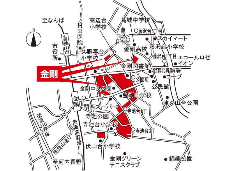 金剛駅から徒歩約10分、難波へのアクセスも良好