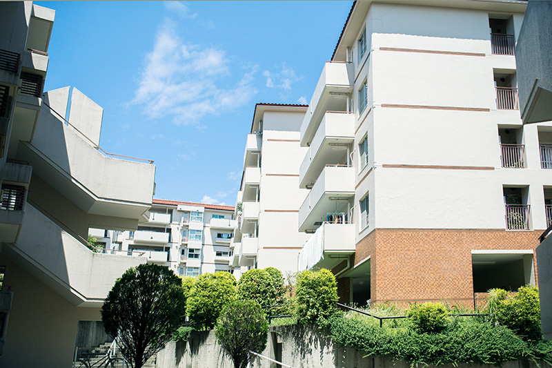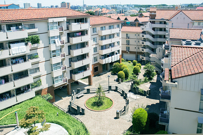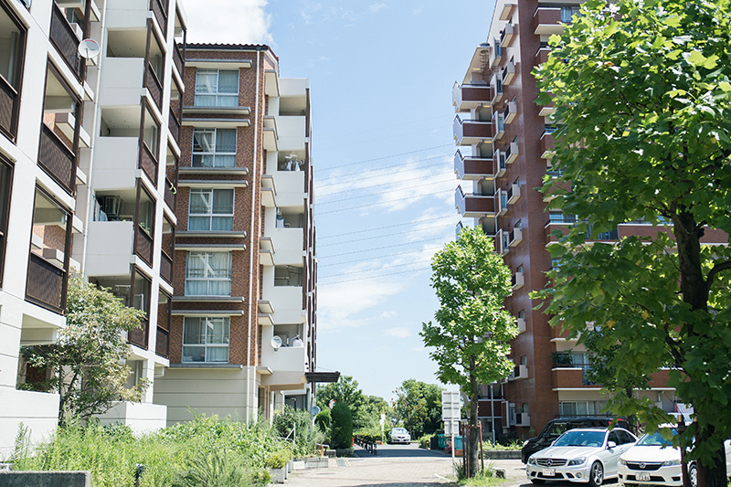 ベルコリーヌ南大沢は2街区に分かれて住棟が配置されています。徹底された歩車分離が行われているため、駅からどちらの街区に行くにも、横断歩道なく到着することができます。今回MUJI×UR団地リノベーションプロジェクトの対象住戸があるのは、駅から徒歩約7分の「3街区」。もう一方はそこからさらに進み、駅から徒歩約15分の場所にある「16街区」です。昭和64年に入居がスタート。時代を牽引するリーディングプロジェクトとして注目を集めました。現在の住戸数は全部で385戸になります。