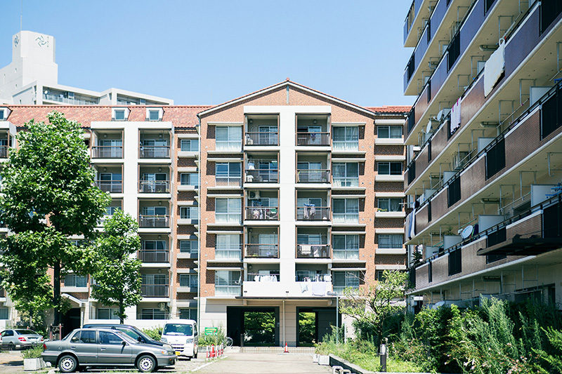 今回、MUJI×UR団地リノベーションプロジェクトが手掛けた間取りは、MUJI×UR plan40、MUJI×UR plan41の2つです。対象住戸が入っている「3街区」には、6階建てが2棟と10階建てが1棟。どれも4名乗りのエレベーター付きです。