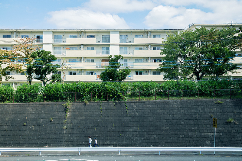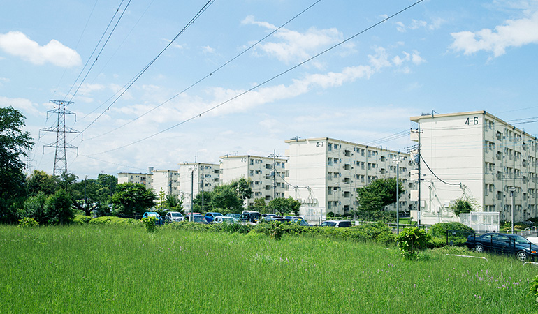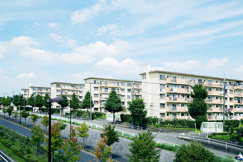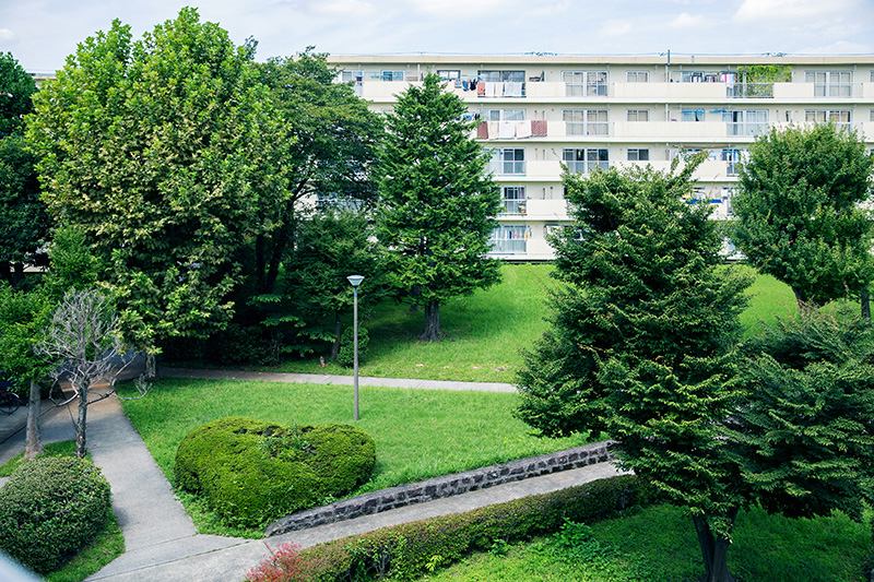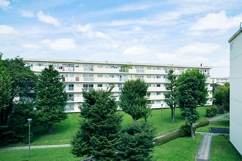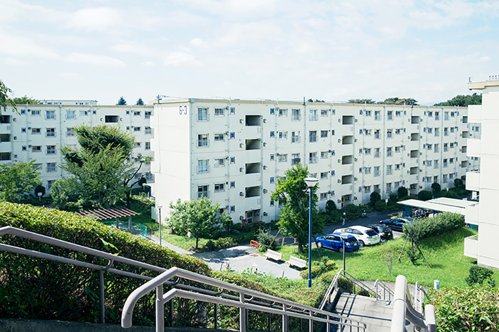 町田山崎団地は、東京都内で上位にランクインするほどの大規模な団地です。5階建ての階段室型の住棟を主に、点在するボックス住棟がアクセントをきかせています。昭和43年に入居が始まり、緑豊かな丘の上に3,920戸もの暮らしの空間が並びます。カーシェアリングを実施しているタイムズもありますが、駐車場が多く設置されているためマイカーを持つ人も多いのだとか。