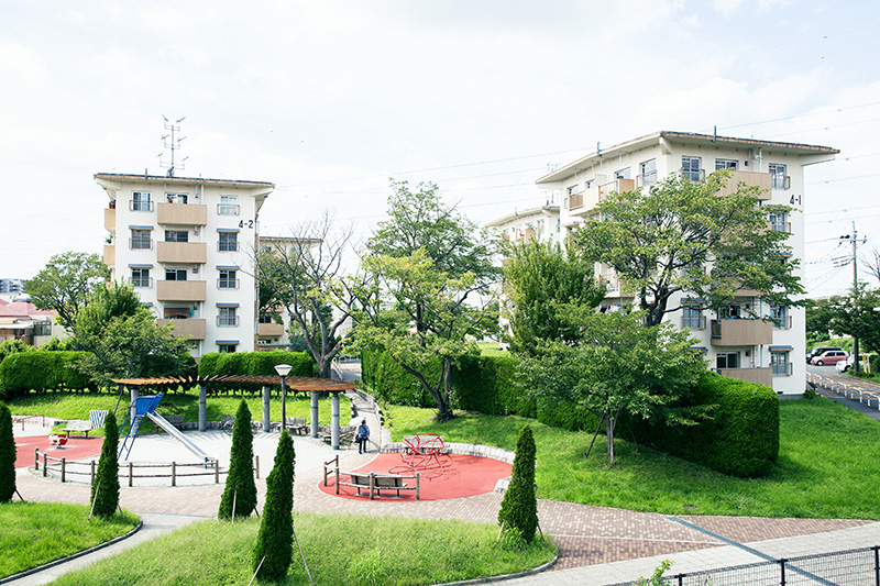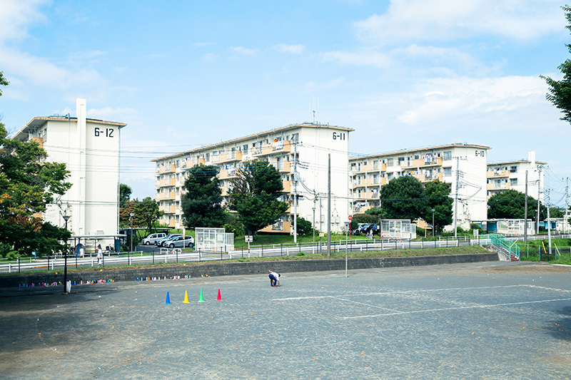 団地にはスーパーマーケットが2つ。他にも郵便局・銀行・薬局など普段の生活に必要なものから、子ども向けの読み聞かせ「おはなし会」を定期的に開催する図書館、卓球・ダンス・句会などのサークル活動が盛んな集会所や「地域コミュニティセンター」、団地住民のゆるやかな交流を目的に健康グッズやおもちゃなどを設置した自治会運営のスペース「みんなの広場」など、日常に彩りをくれる施設も充実しています。