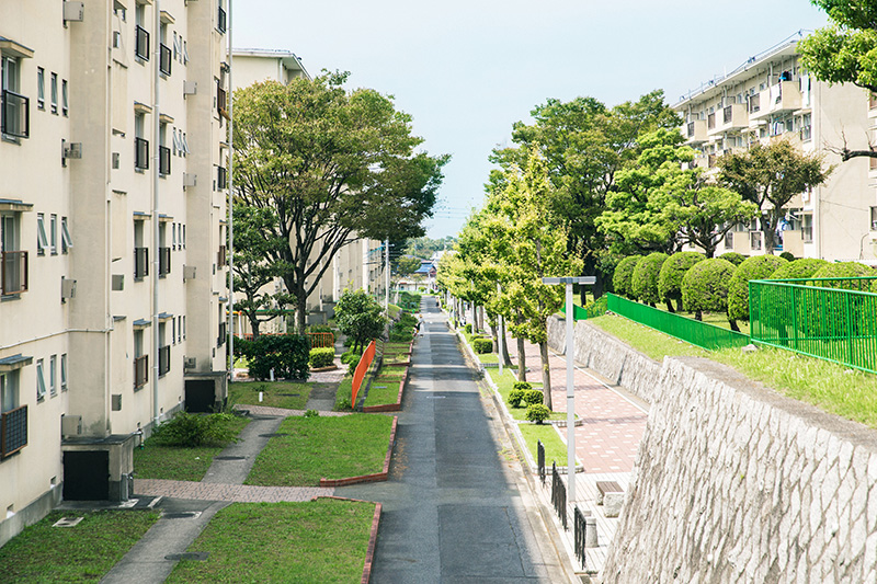 名古屋駅までアクセス良好、かつ自然豊かな住環境。それを見事に両立する団地があることをご存知でしょうか。エリアは、相生山緑地や戸笠公園などの緑に恵まれ、幼稚園・小学校・中学校といった教育施設が隣接するなど、閑静な住宅街で子育てに最適な天白(てんぱく)区。その丘陵地のふもとにある相生山(あいおいやま)団地です。フラットな地形の名古屋市内では希少な、“ちょうどいい”サイズの高台のある暮らしをお届けします。