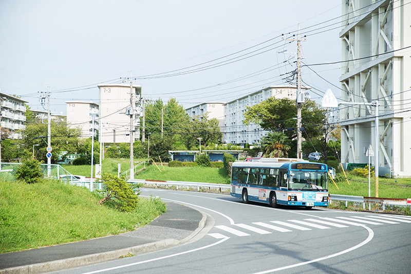 最寄駅は、乗降人員の1日平均が約46,000人という京成本線「八千代台駅」。同電鉄内で京成上野駅に次ぐ利用者の多さです。駅から団地までは、京成バスで8分ほどの距離。発着便数が非常に多く、団地周辺にはバス停も複数あり、バス移動の便利さに驚かされます。