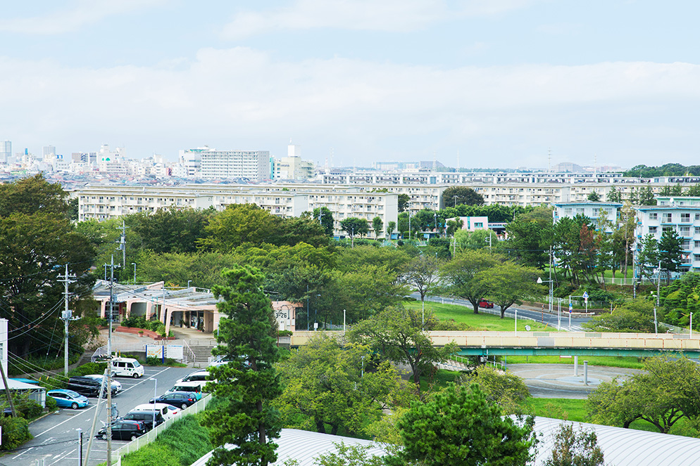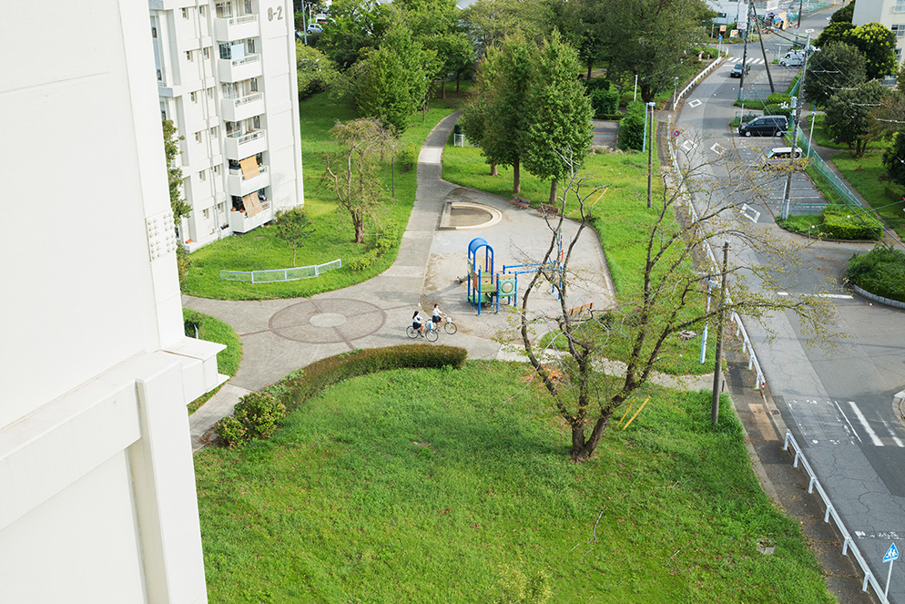 花見川団地は5階建てを中心とする163棟・5,742戸によって構成される巨大な団地です。魅力として特筆したいのは充実した子育て環境。近隣には保育園3園や幼稚園2園、小学校3校、図書館、広大な芝生が美しい中央広場、砂利を敷き詰めた大規模な運動公園があり、住棟と住棟の間には緑豊かな自然と遊具も備わっています。集会所では、ダンスやヨガなどのサークル活動のほか、子育てママの会が開かれることもあるようです。