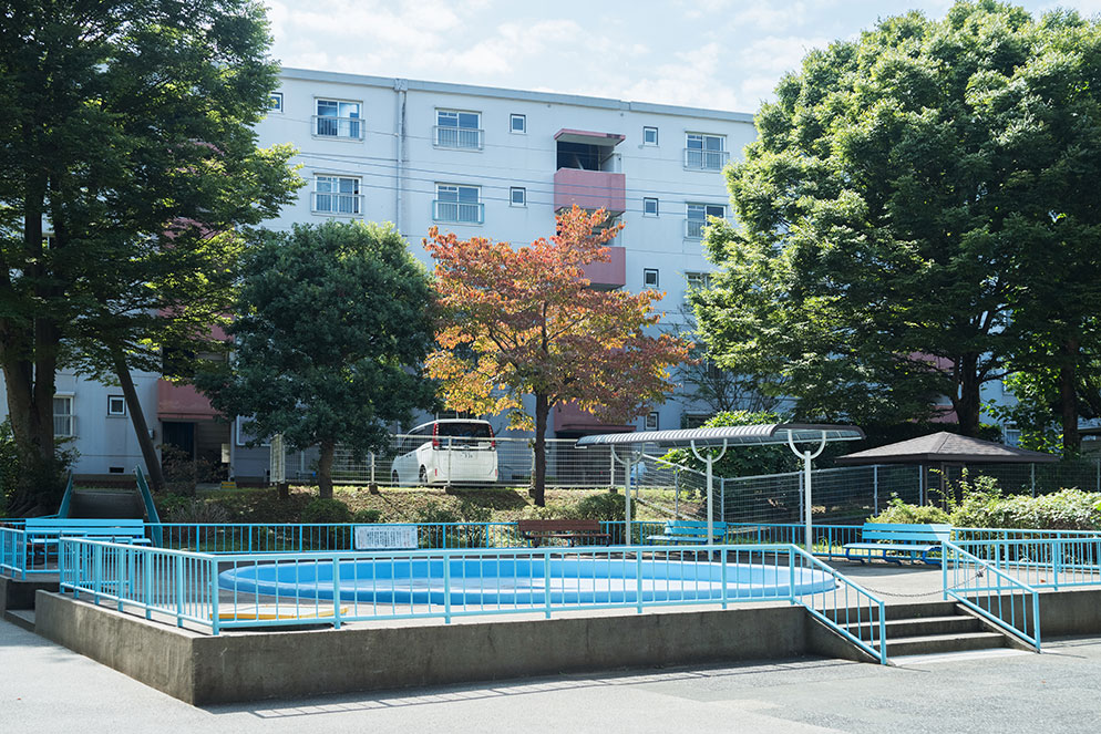 遊具を備えたプレイロットが緑豊かな敷地内の各所にあり、なかには夏季に開放される幼児向けの大きな水遊び場が備え付けられたものもあります。また、団地の中央には昭和46年に開園された「小金原公園」があり、森のような心地よい空間のなかに、木製のアスレチックや野球もできる広大なグラウンドが設けられています。