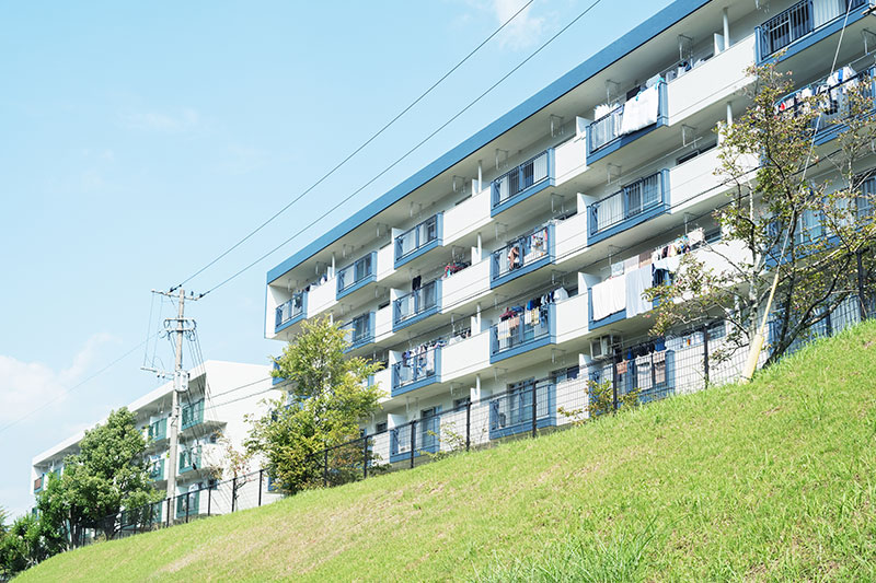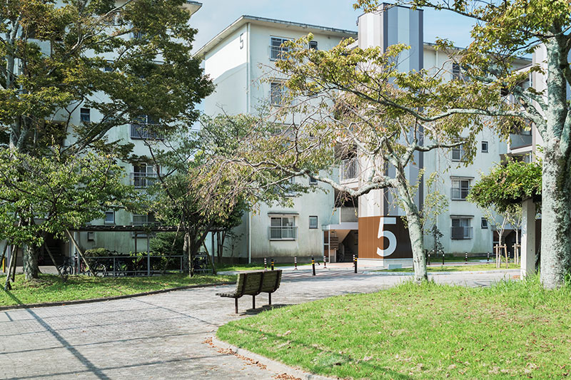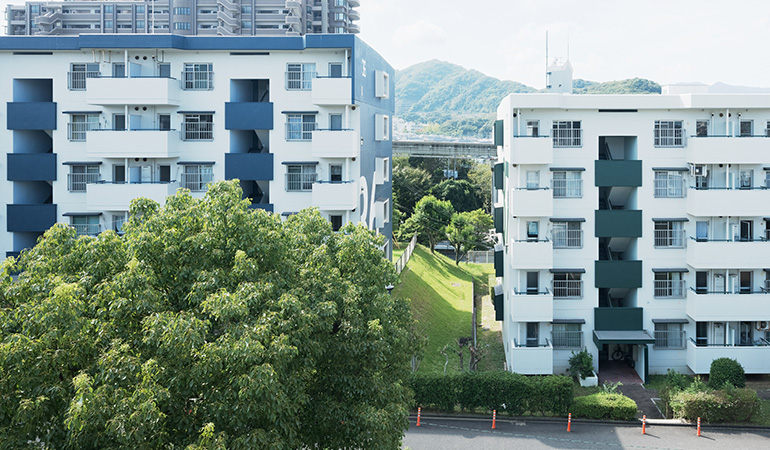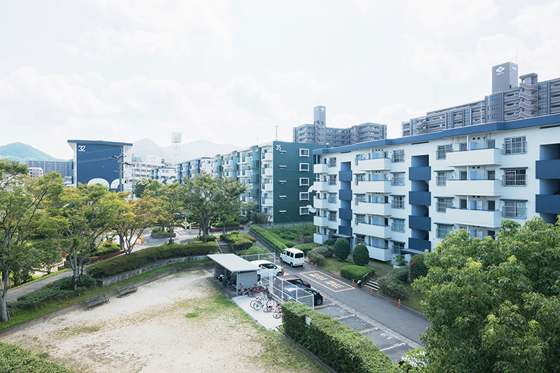 新幹線も停車する福岡県北九州市の中心部・小倉駅からモノレールに乗って約15分で団地の最寄り駅へ。この小倉南エリアは文教地区として評判で、北九州市街地へのアクセス至便なベッドタウンとして重宝され、商店や医療などの生活利便施設も勢揃いしています。地域の人々がみんなで協力し合って夏祭りや餅つきを開催するなど、地域とのコミュニティづくりにも積極的で、子育て環境としても最適な「志徳団地」をご紹介します。