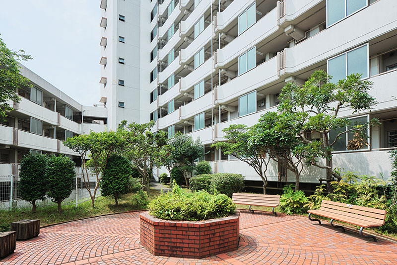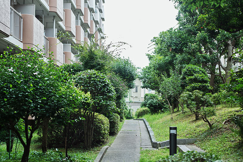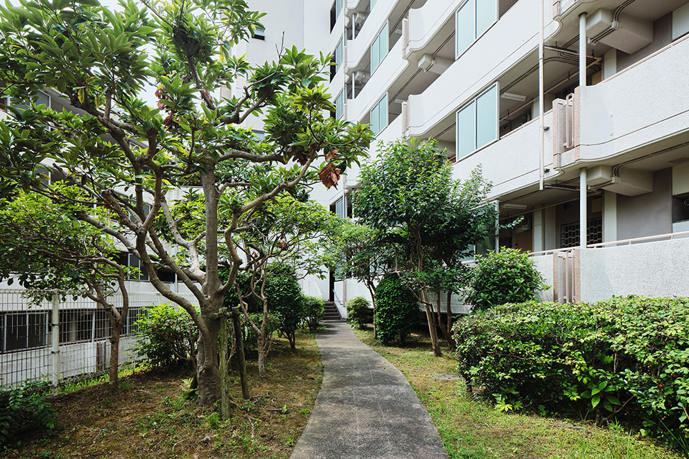 団地内は、建物や駐車場の合間に、樹木が植えられており、心地のよさを感じます。1号棟と2号棟の間にある小さな公園には、遊具もあり、目の届く範囲でお子さまたちを遊ばせることもできるでしょう。