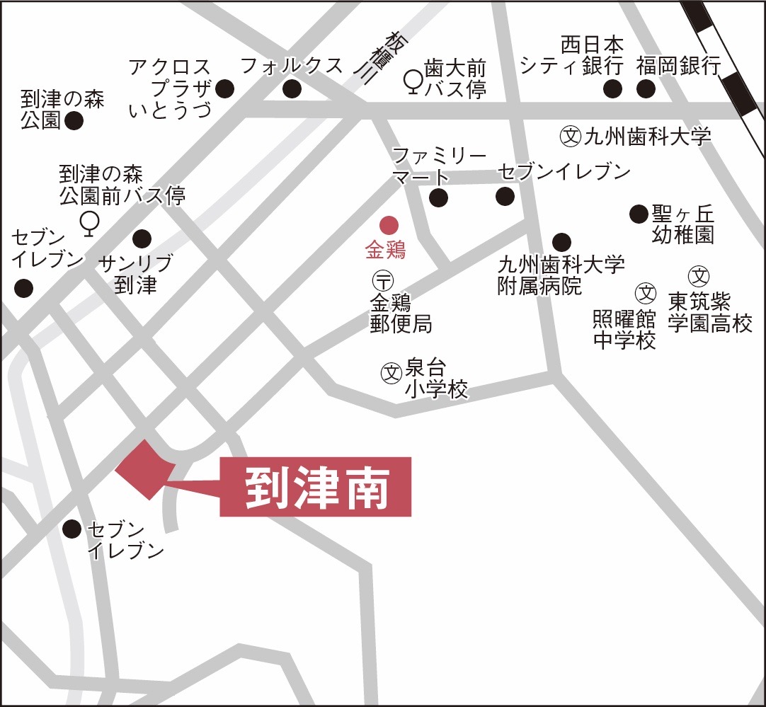 周辺は「市立到津保育所」や「鷹見幼稚園」といった幼稚園や保育園、小中学校といった教育施設に加えて、病院やクリニックなどの医療施設も充実しています。