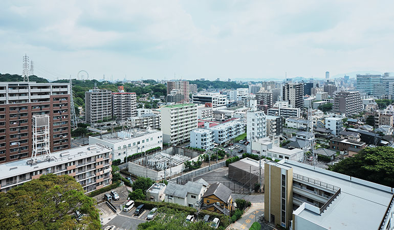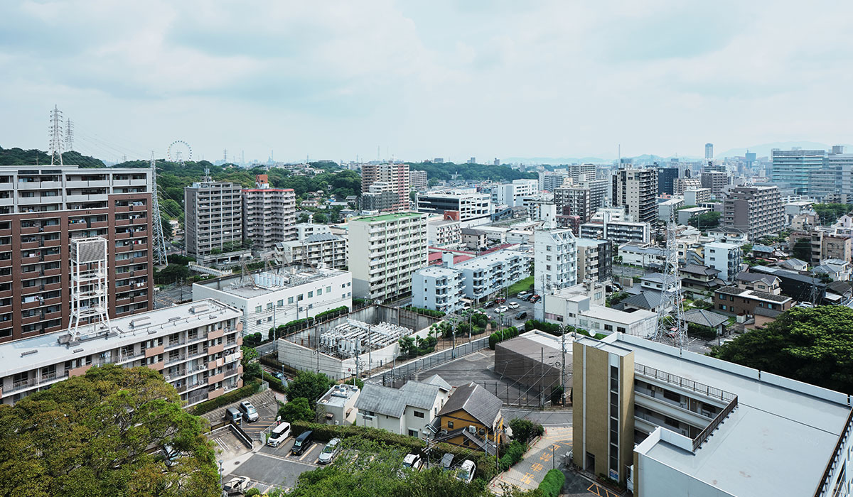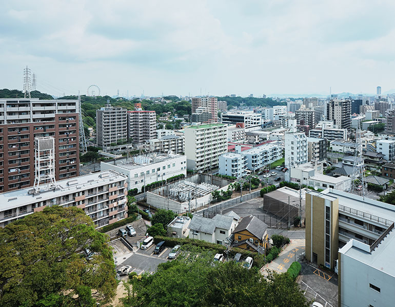 福岡県の北東部に位置する北九州市は、自然と都会のバランスが取れた人口90万人強の政令指定都市。子育てや女性の就労などをサポートする環境が整っており、「住みやすい街」として、広く注目を集めています。 その中心地「小倉駅」からバスで約20分。「到津の森公園」バス停で降りて、徒歩で5分ほど。閑静な住宅街の一角に「到津南団地」があります。