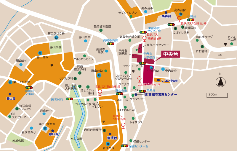 エリア内には「中央台幼稚園」「中央台小学校」が、近隣には徒歩圏内に保育園、中学校や高校といった教育施設が揃っている上に、小児科をはじめとする医療機関、そしてニュータウン周辺には救急医療対応の総合病院もあります