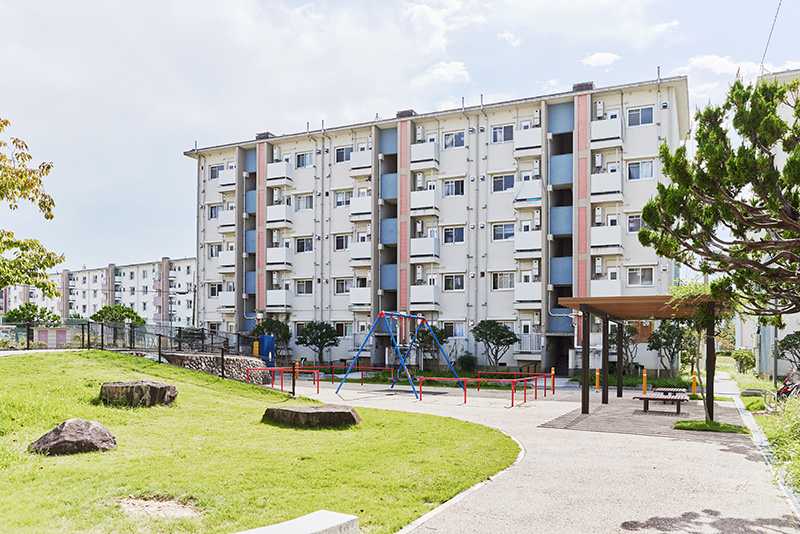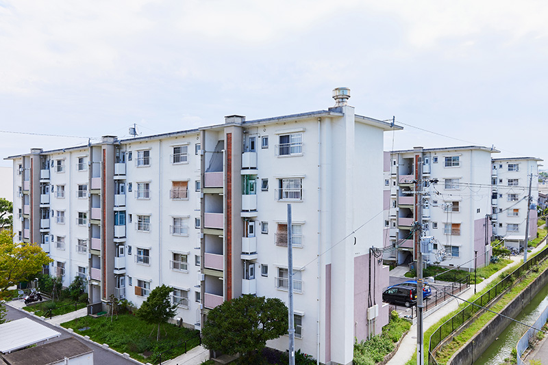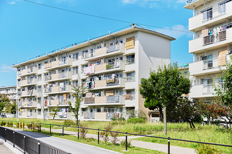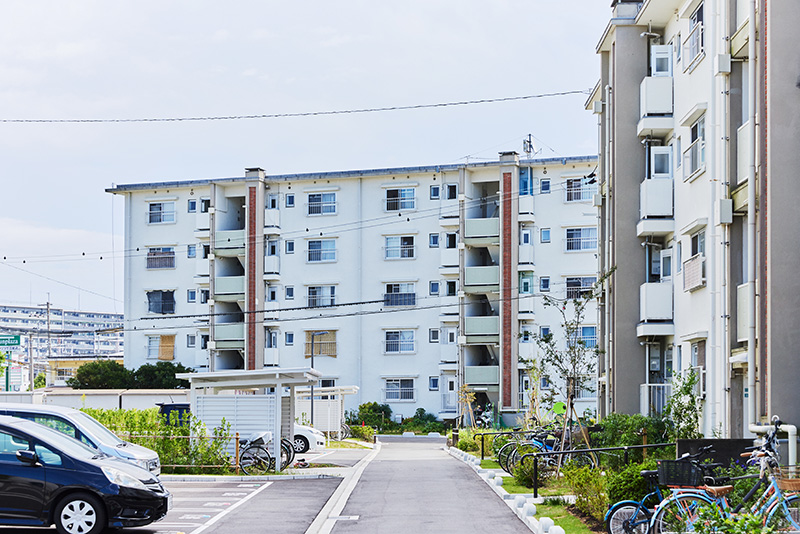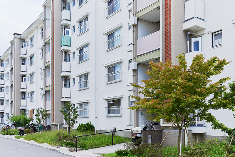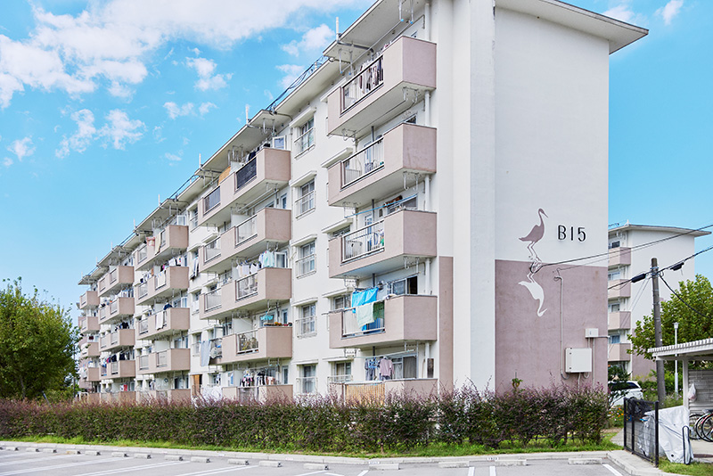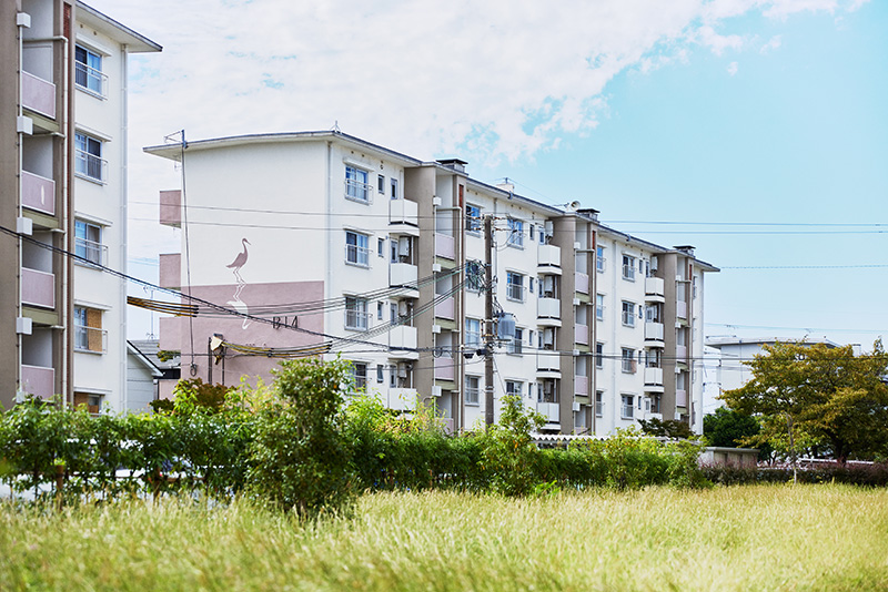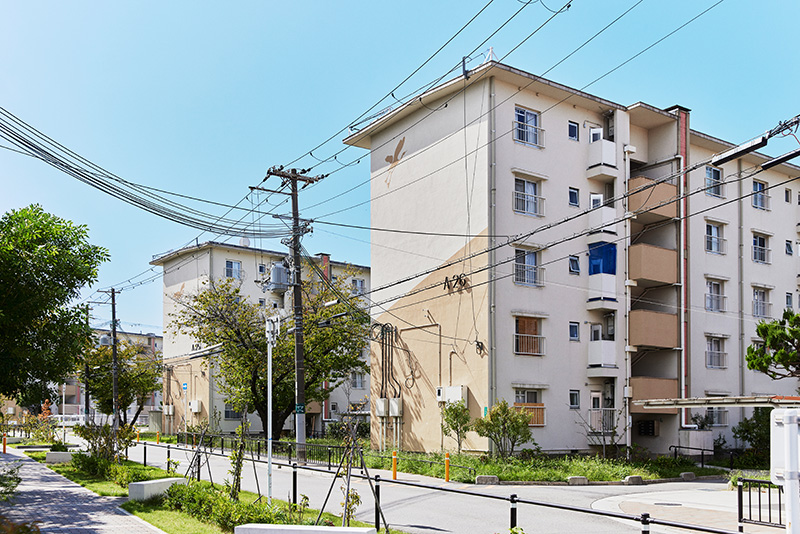 「白鷺団地」は、昭和30年代後半から40年代はじめに建設された、42棟1,421戸の団地です。近年は、リノベーションや緑化計画、屋外共用部分の改修なども行われており、敷地内は白を基調とした4階、5階建ての住棟が並んで、すっきりとした雰囲気に統一されています。