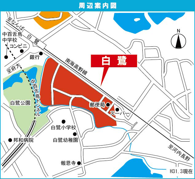 地内にはプレイロット(小公園)が点在しているほか、近隣には「白鷺幼稚園」や「白鷺小学校」といった教育施設、遊具やグラウンドがある総合公園「白鷺公園」もあり、子育てにも適している地域です。
