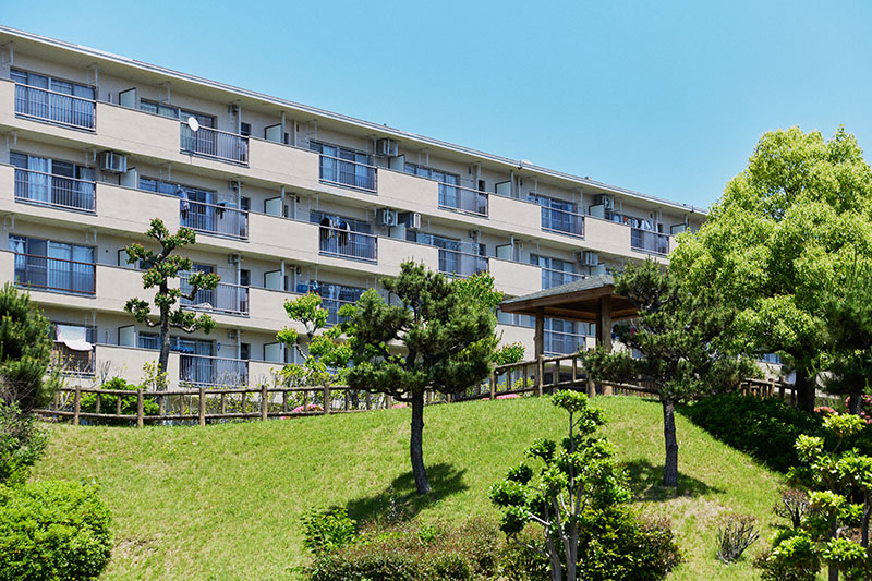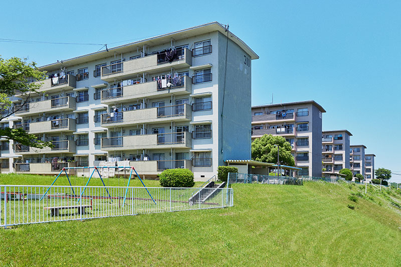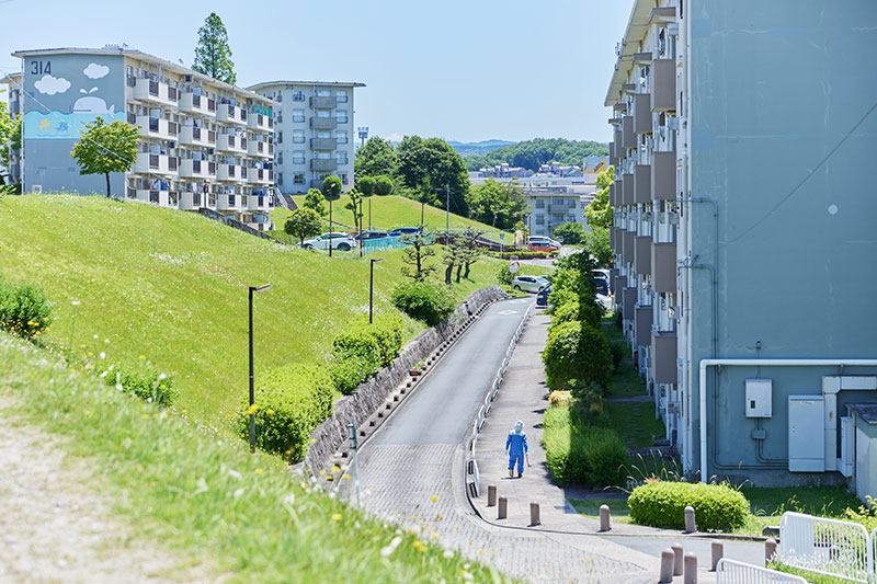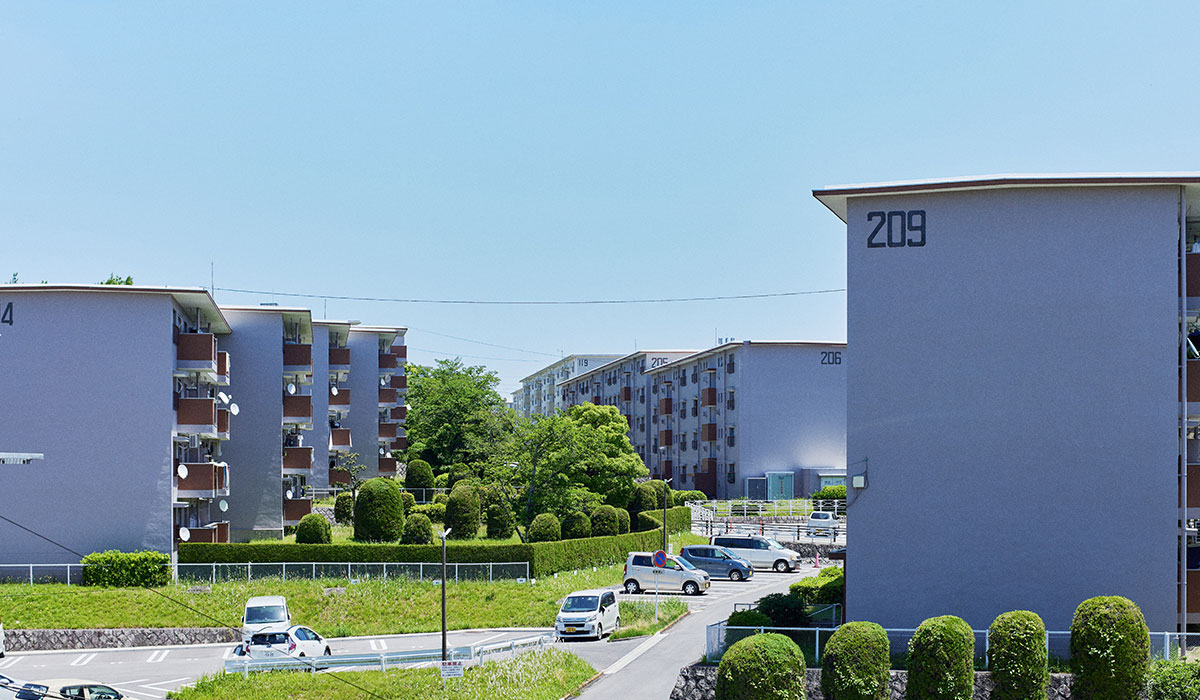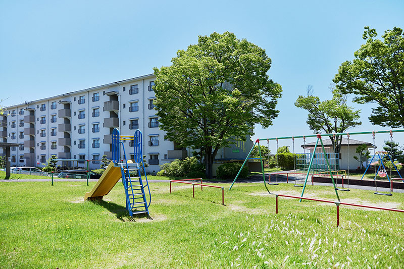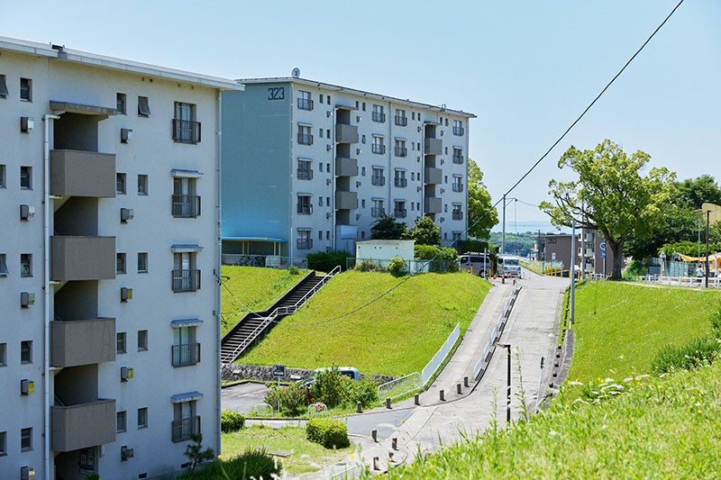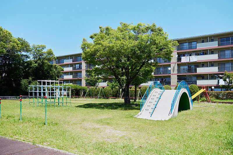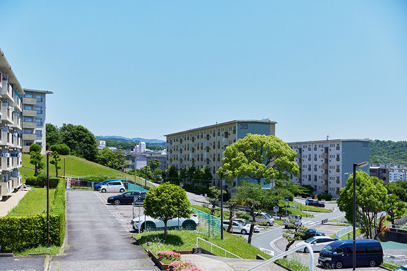 街や、名古屋の市街地も望めるような景観の良さも、この団地の特長です。 「丘陵地に広がっているので、自然災害への不安が少ないところがいいな、と感じています。団地内には緑も多いので、天気の良い日はこうやって外でのひとときを楽しんでいます」。団地内の公園で、読書していた女性は、そう語ってくれました。
