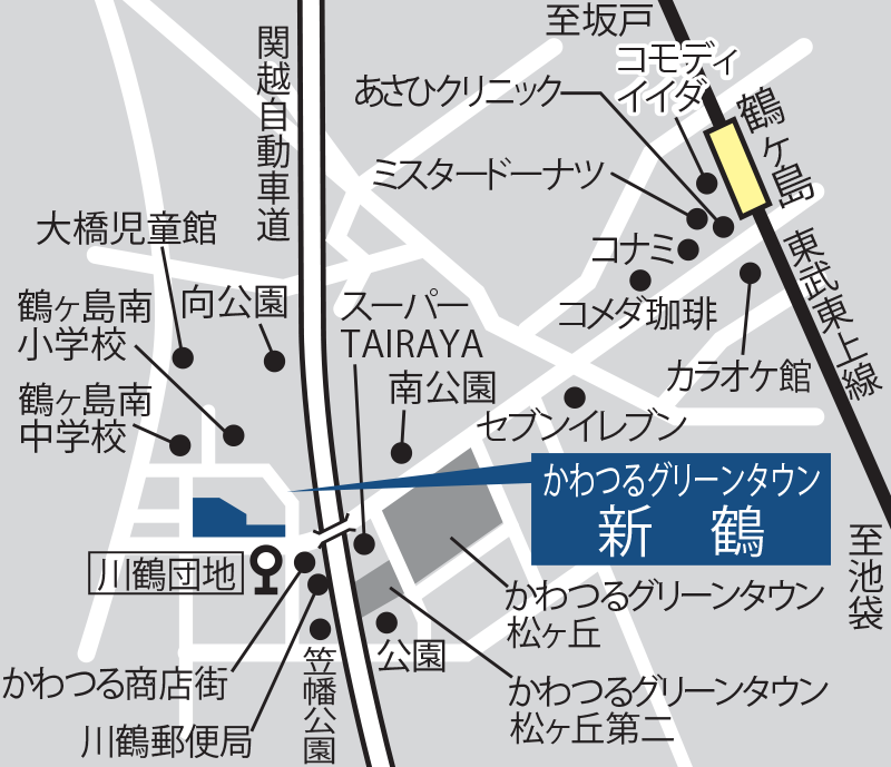 さらに「鶴ヶ島駅」から「池袋駅」までは、直通列車で40分ほど。都心へのアクセスも良好と言えるでしょう。