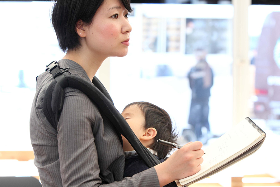 - (当日、お子さんをあやしながら取材しているスタッフを見て)