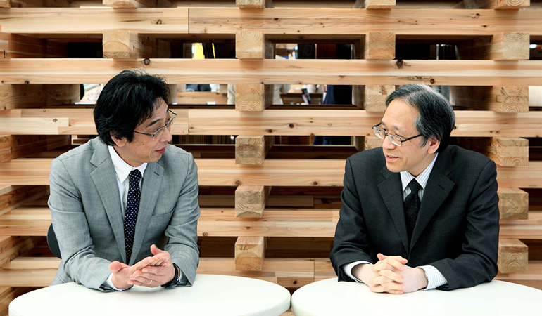 MUJI×UR団地リノベーションプロジェクトでは、2013年3月に「団地を舞台に考える“感じ良いくらし”」をテーマに、UR都市機構の理事で西日本支社長を兼任されている大西氏と、良品計画代表取締役社長の金井政明との対談を開催しました。