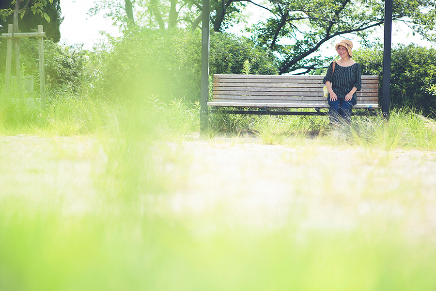 - 幼い頃は、まちなかで育ったから、小枝が道に落ちているなんてことなくて。昔、小枝を使って小物をつくるワークショップに参加したことがあるんです。「そんなん落ちてるわけないやん!」って思っていたんだけど、この公園に来るとたくさんあって(笑)。どんぐりとか松ぼっくりが落ちてて、うれしかったなぁ。子どもよりよろこんでいたかも。このあたり、やっぱり好きやなぁ。
