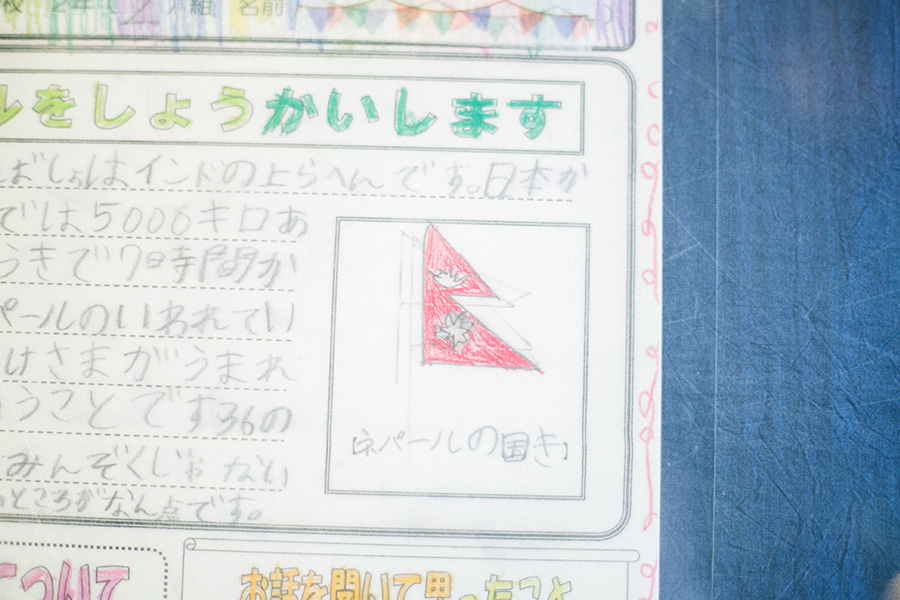 - これは呉服小学校や池田小学校などの子どもたちからの手紙です。実は国際学習として、文化や料理など、ネパールのことを時々教えに行っているんです。授業に参加した子どもたちから、お礼の手紙をもらったので飾っています。