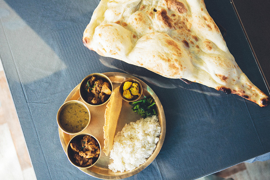 現地の味を提供するネパール料理店。 ダル(豆)スープと、パート(ごはん)、カレー、お漬物、ひよこ豆のおせんべいがワンプレートになったダルバートや、パンづくりのプロならではのナンなどを用意。