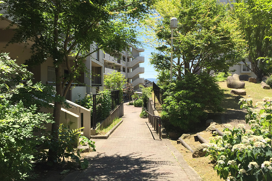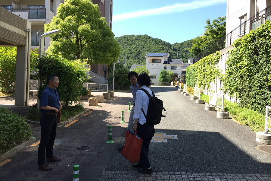 この日も2時間以上の打ち合わせが終わって解散、団地の向こうに見える五月山を眺めながら。皆様お疲れ様でしたー!