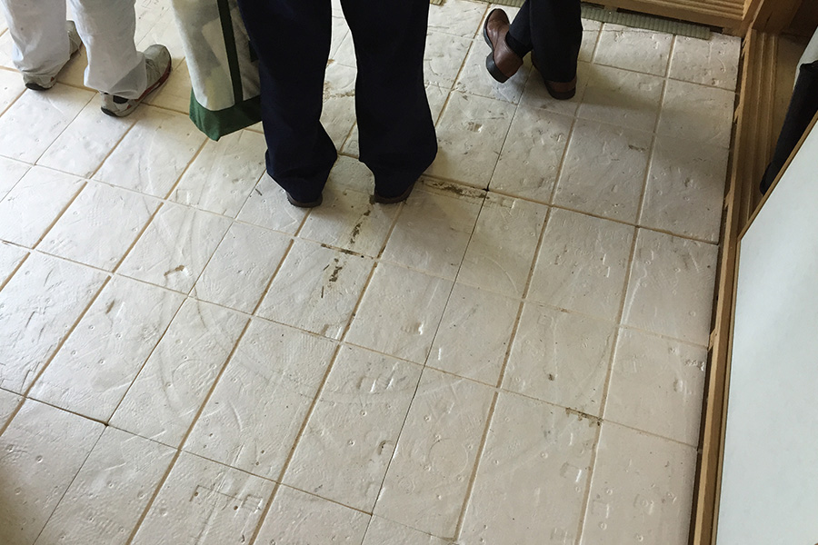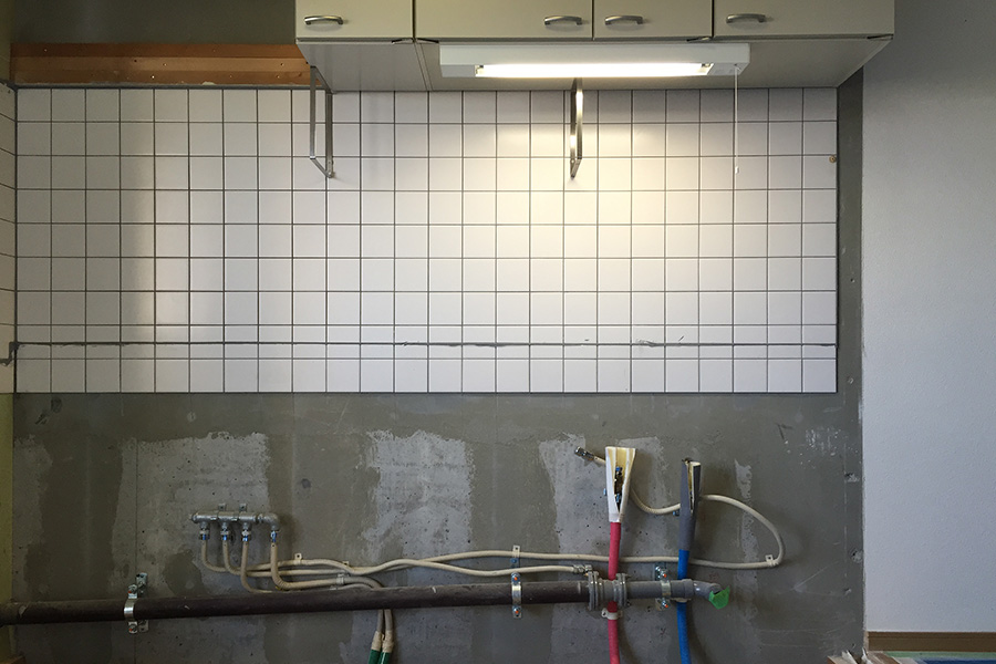 こちらはリノベーションの要であるキッチンで議論が炸裂中。給水と排水の位置を何度も確認しています。いかに効率的で、かつ綺麗につないでいくのかがポイントだそう。