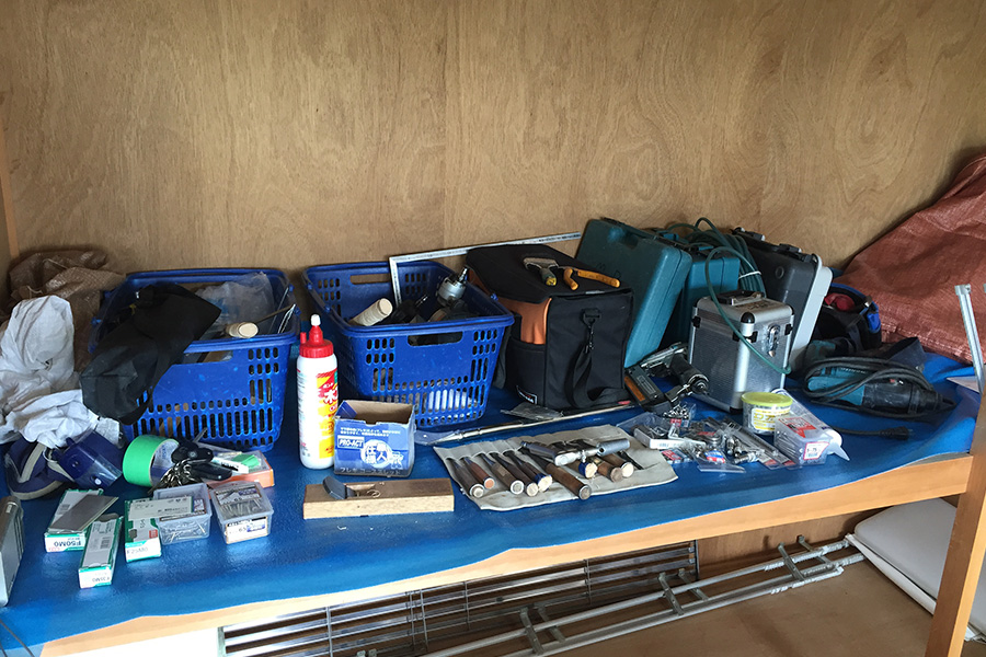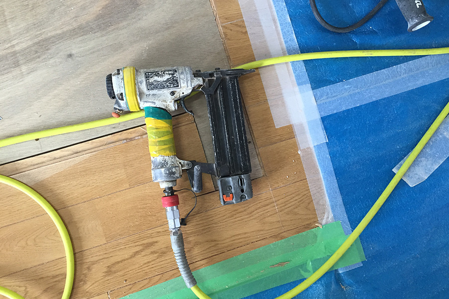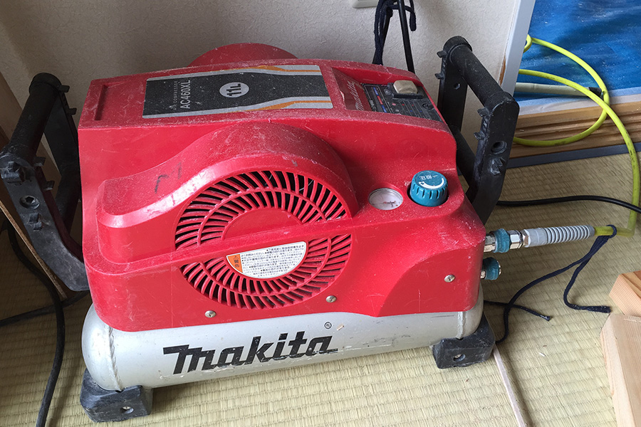 木材の取り付けのビスはこの機械で打ち込んでいきます