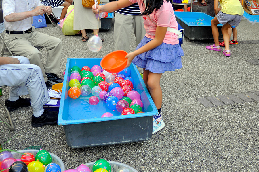 夏まつり。ヨーヨーすくいとすいか抽選会