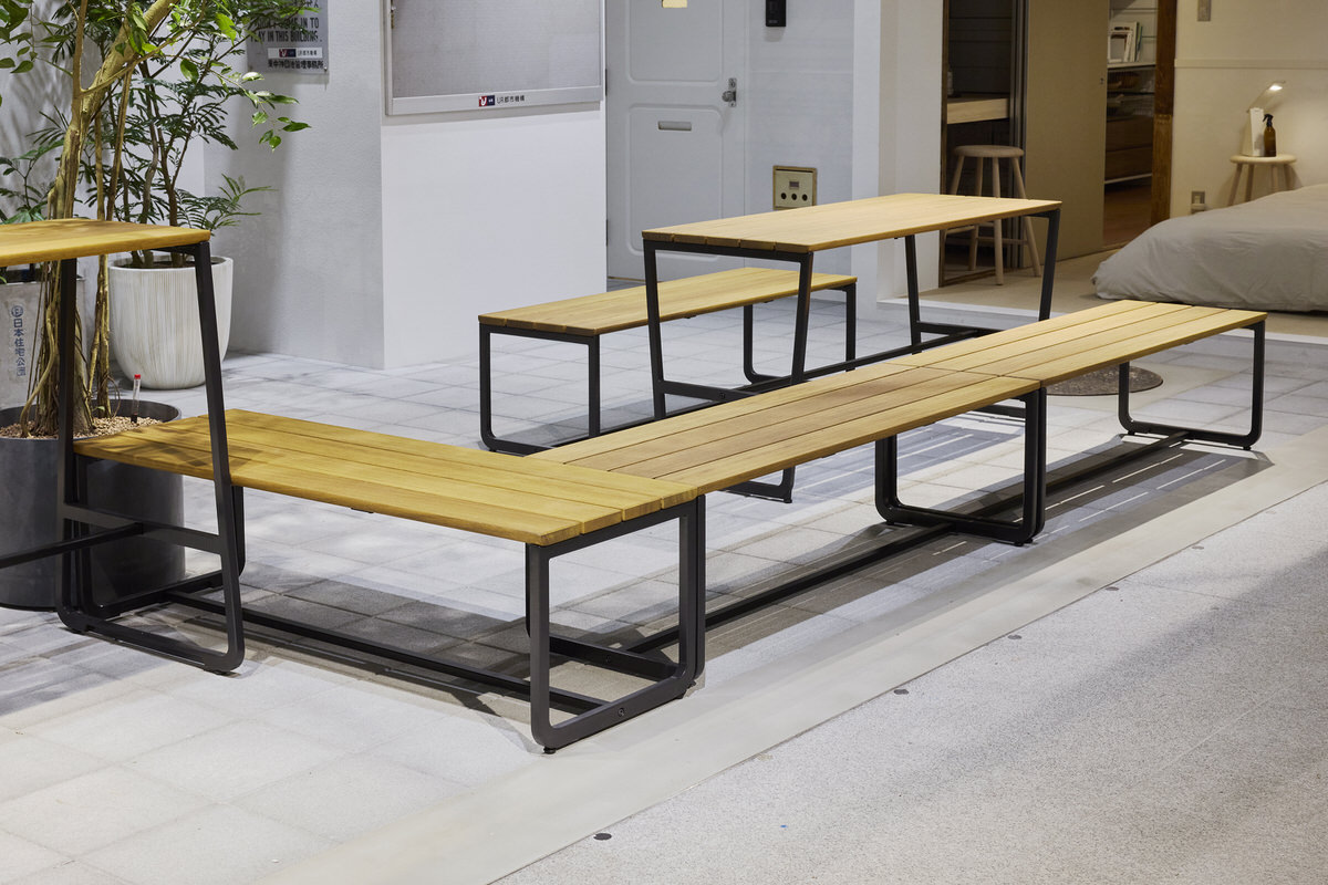 団地の屋外空間も再現したひろばにも、団地で使用されていた掲示板や住宅公団時代のマンホール、共同開発したつながるストリートファニチャーが設置されています。