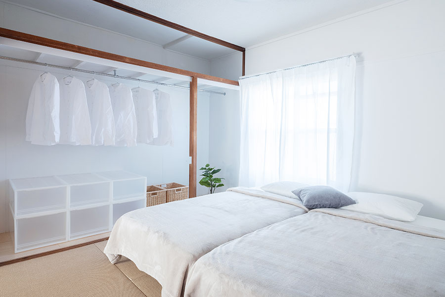 寝室の押入のふすまと中棚を撤去することで、ウォークインクローゼットとしても活用できる。