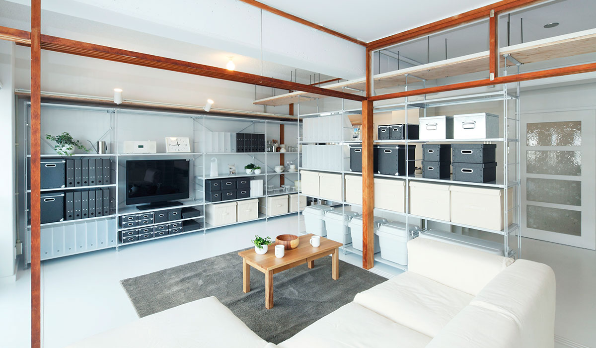 古くて味わいのある柱や建具を残す一方で、ふすまや壁を撤去し、広い一室空間としました。決まった間取にあわせて自分の暮らしを変えるのではなく、自分の暮らしに合せて間取を編集できます。