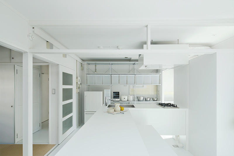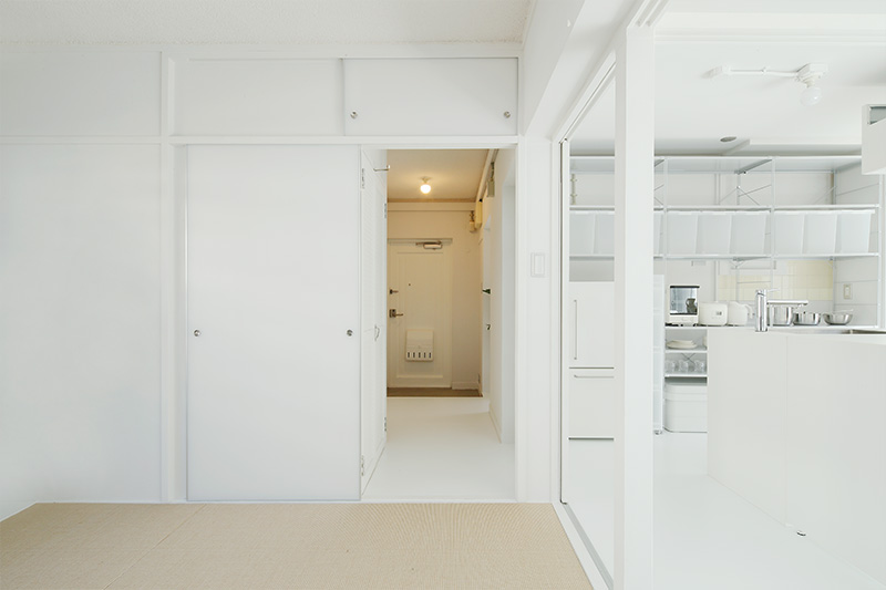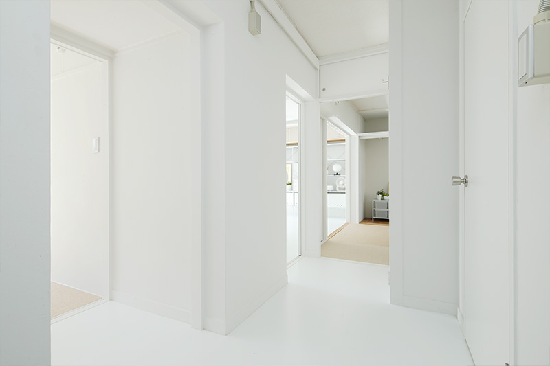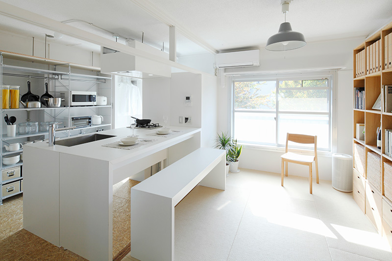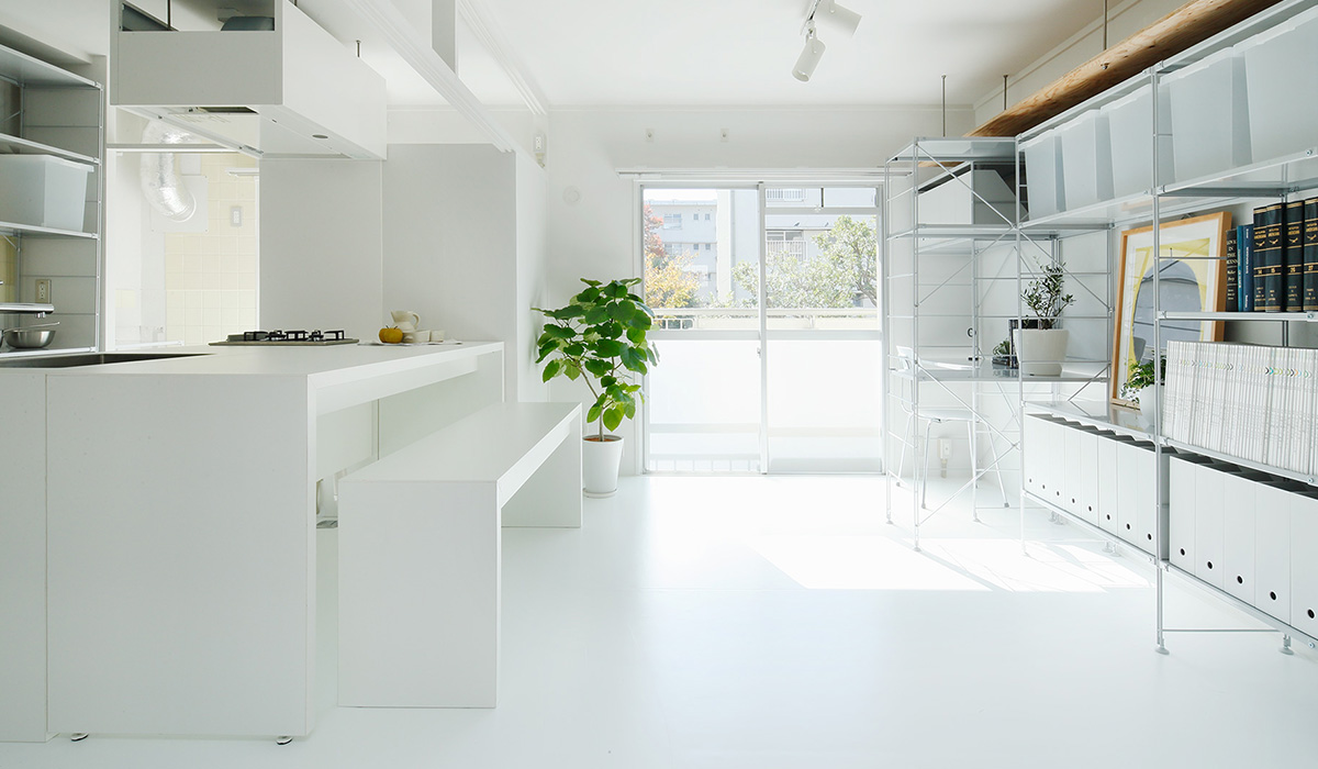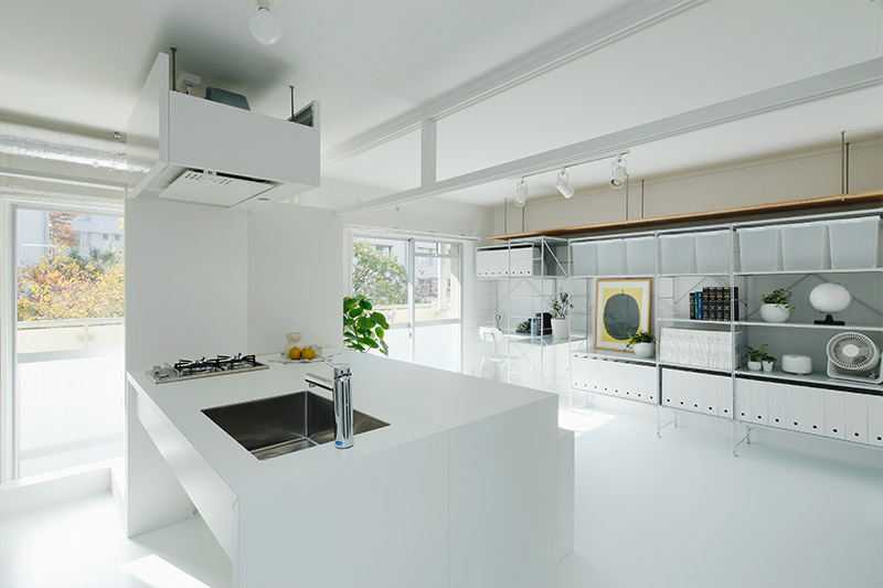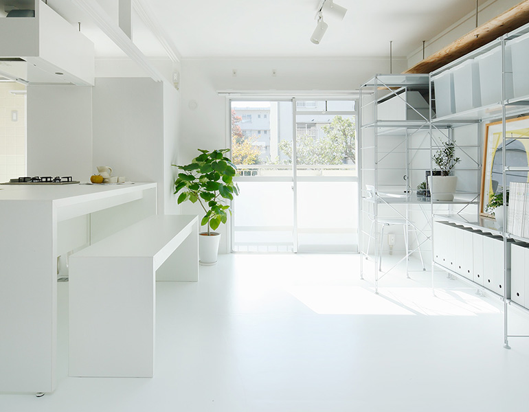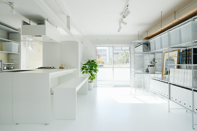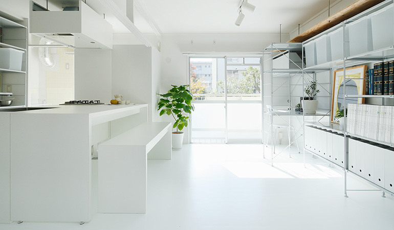 窓から差し込む光を最大限に活かす真っ白な壁面と天井。