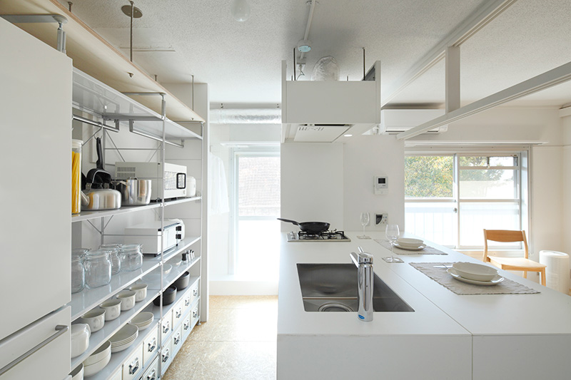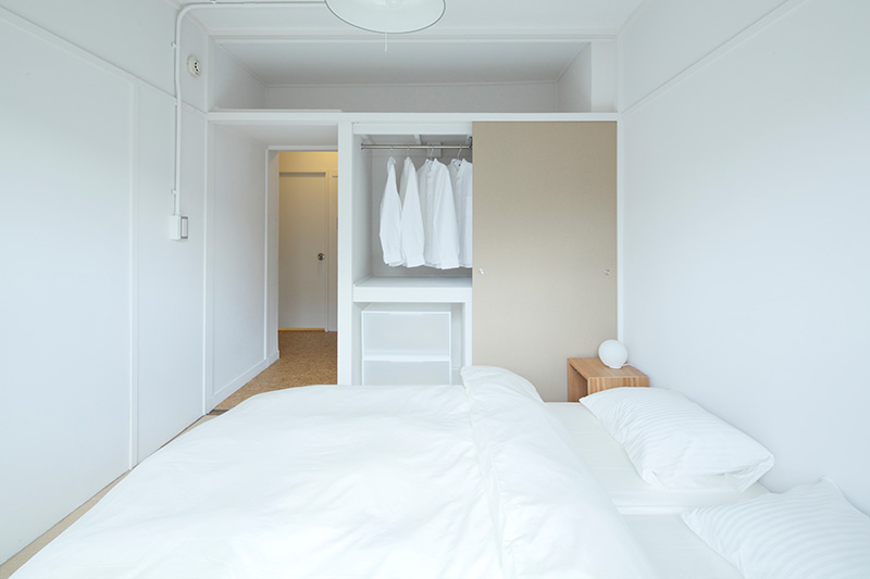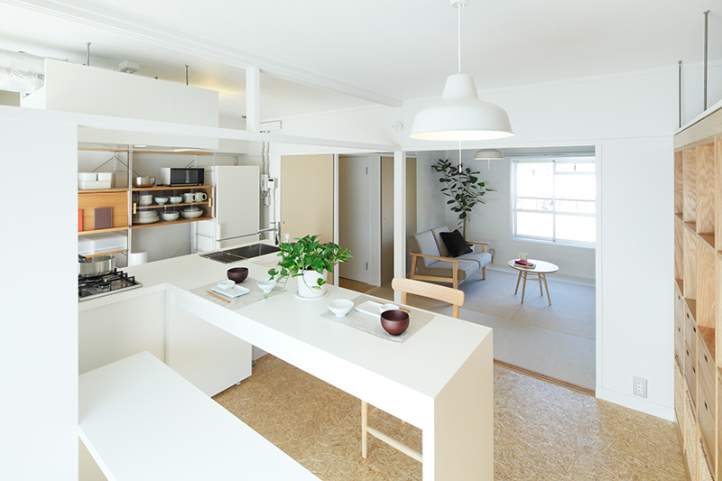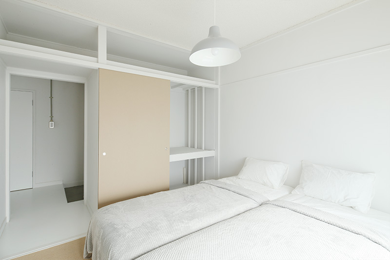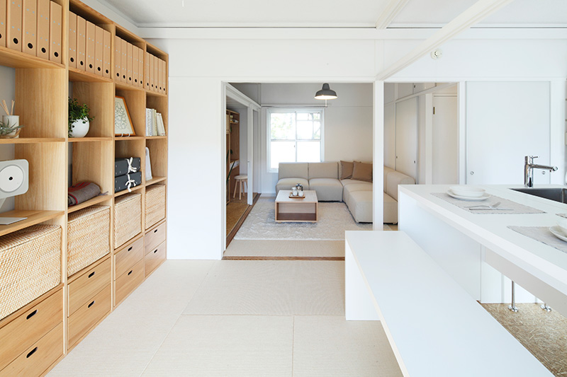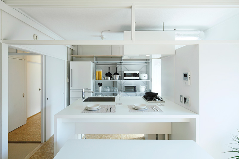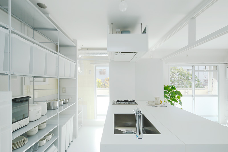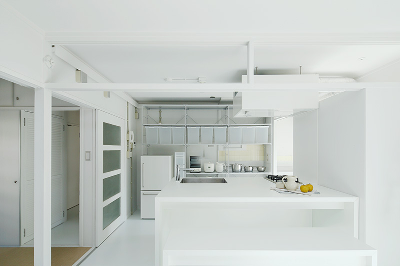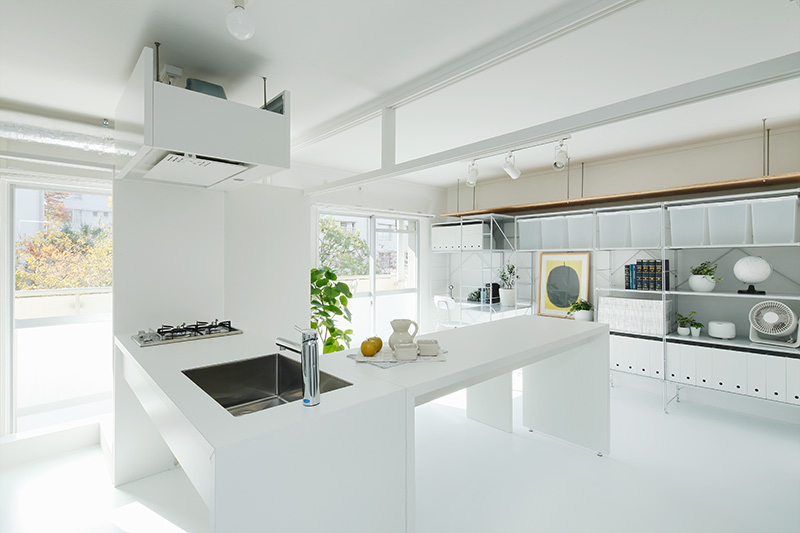 窓から差し込む光を最大限に活かす真っ白な壁面と天井。