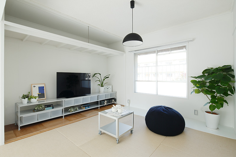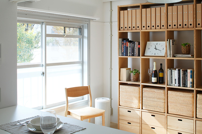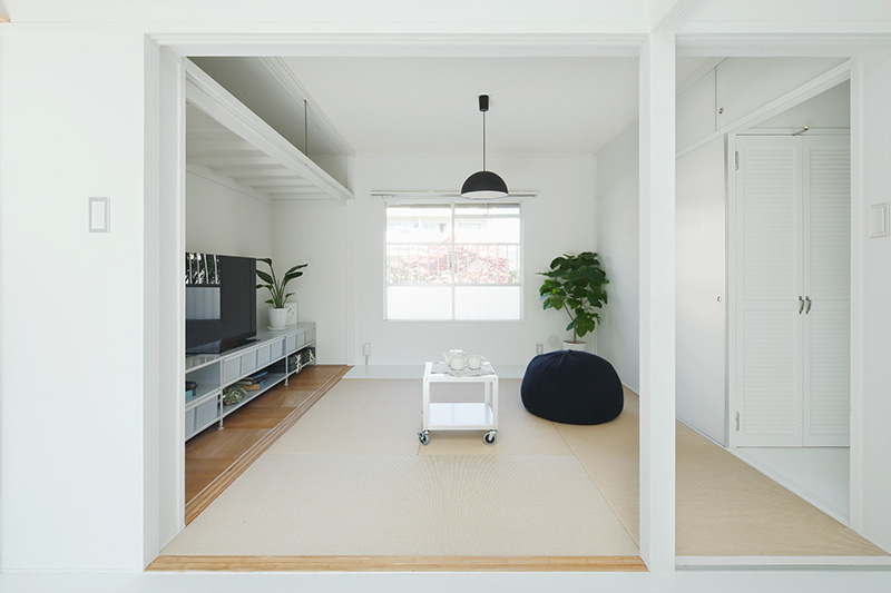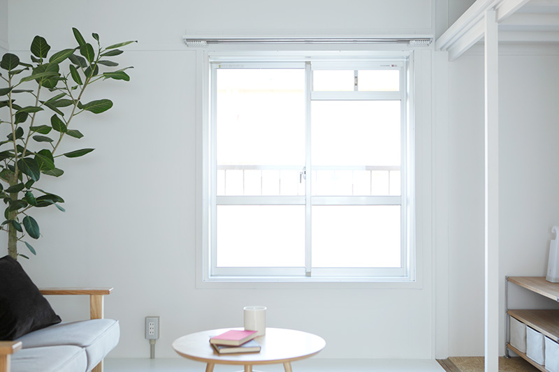 両側に窓があるため、 部屋のどこにいても光と風を感じることができる気持ちのよい一室空間。