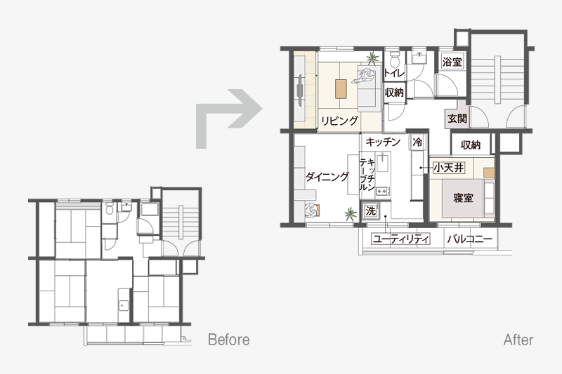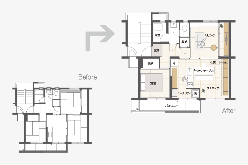 LDKを南北に真っすぐつなげることで、部屋全体に万遍なく光と風が通り抜ける空間ができました。