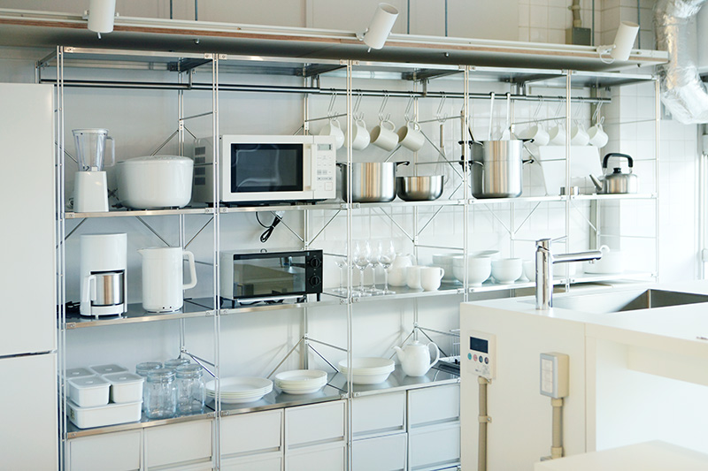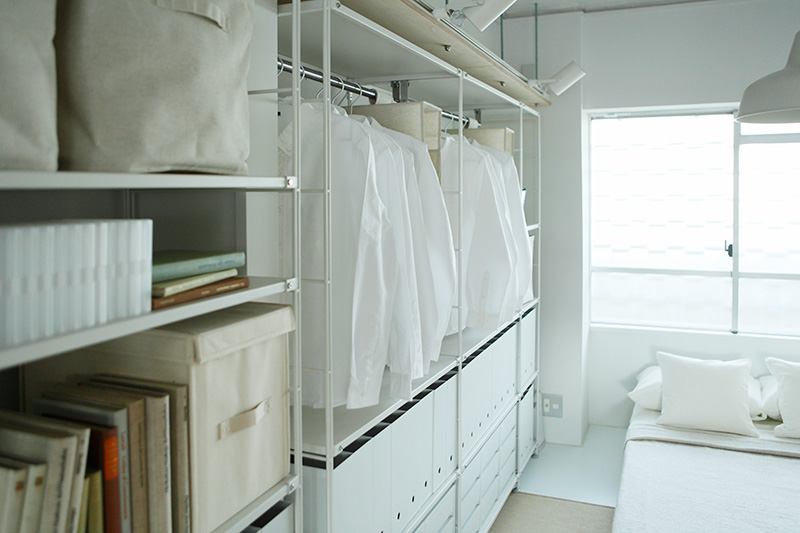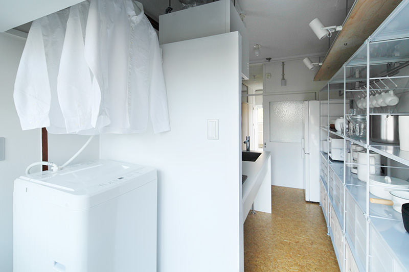 家の片側の壁をすべて収納に。生活に必要なあらゆるものが豊富に収まります。