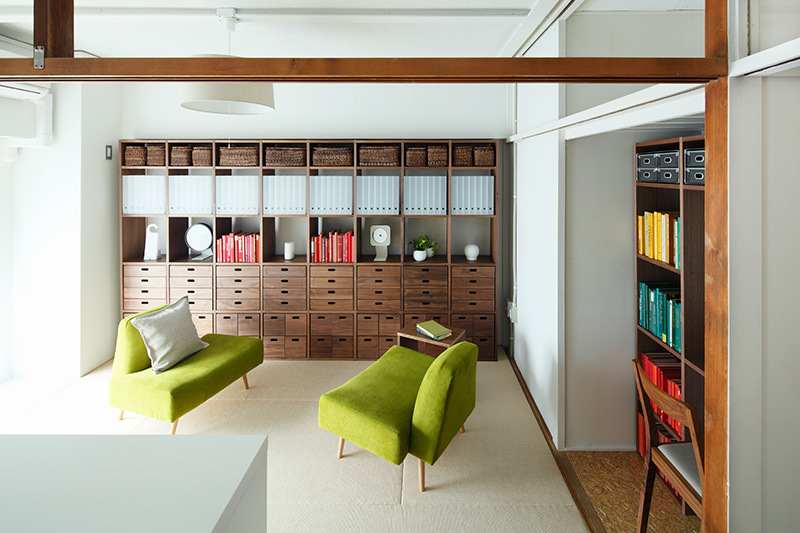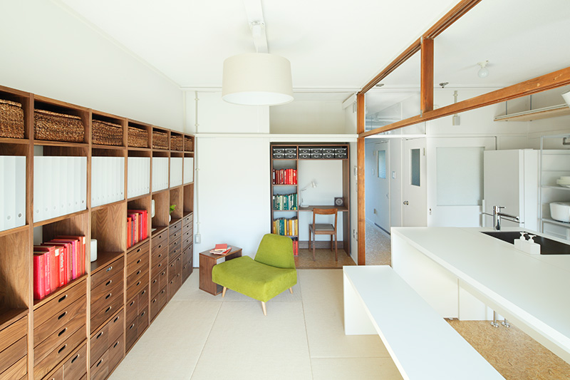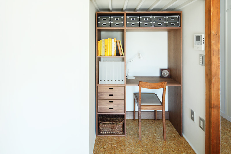 リビングの奥には、元々押入だったスペースを生かした書斎コーナーが。