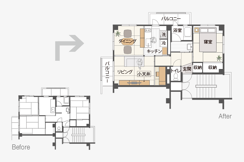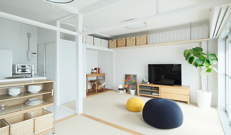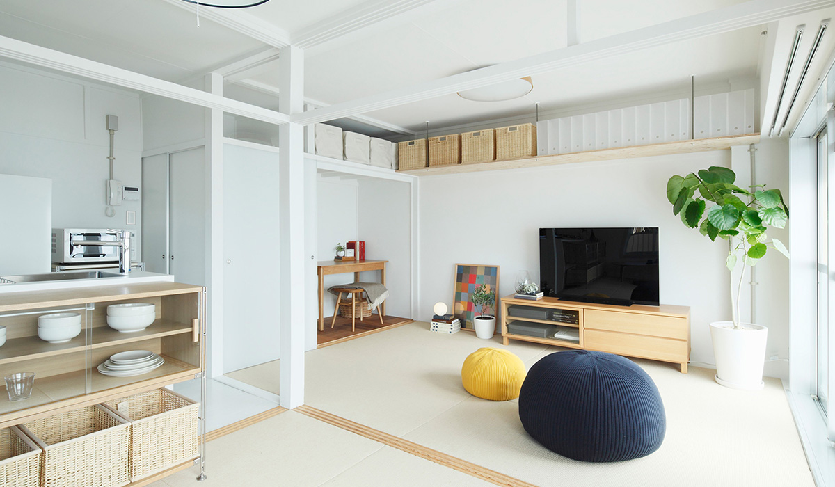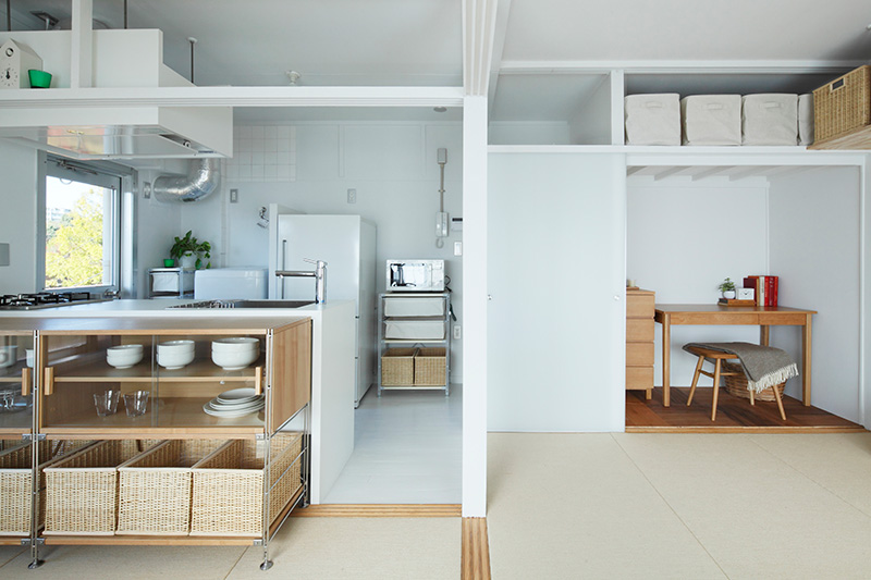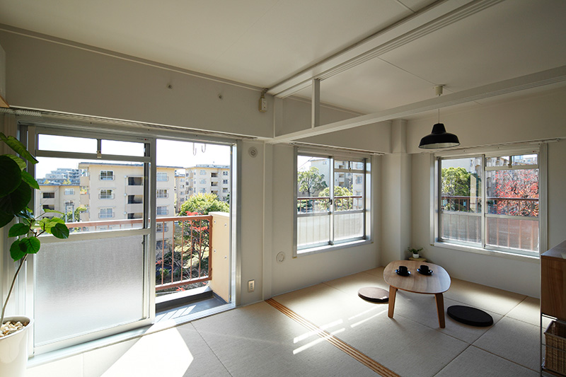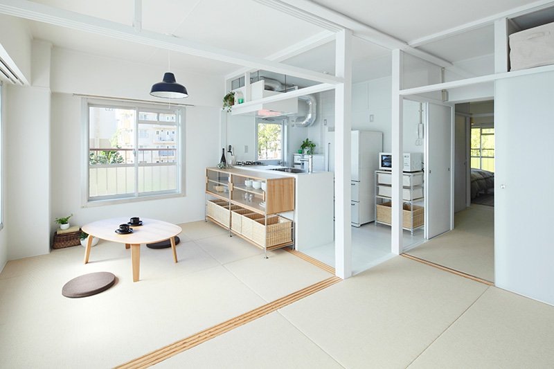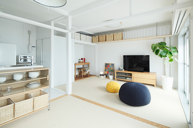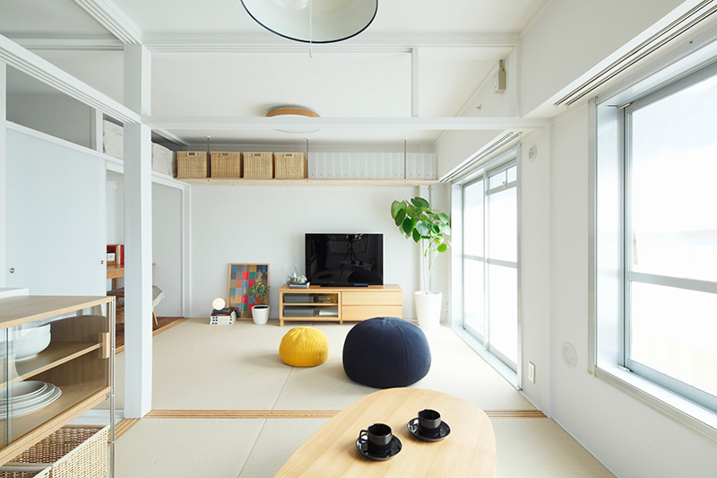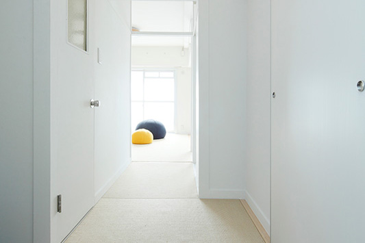 麻畳をLDKや寝室や廊下に敷き、ゆるやかに空間をつなげました。