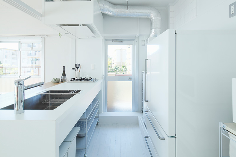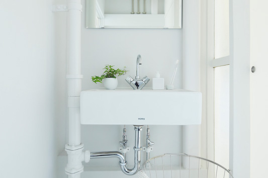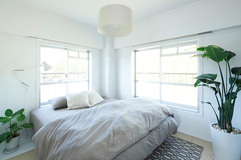寝室や浴室にも白い壁を採用。部屋を明るく、広く見せます。