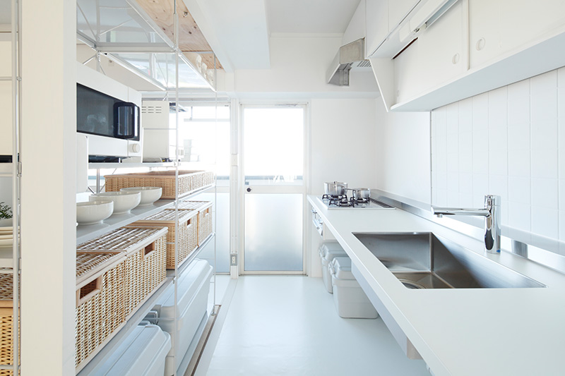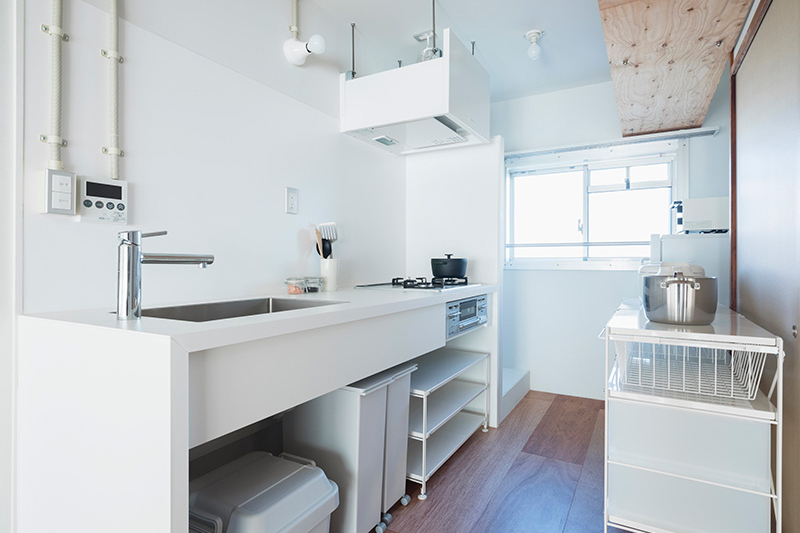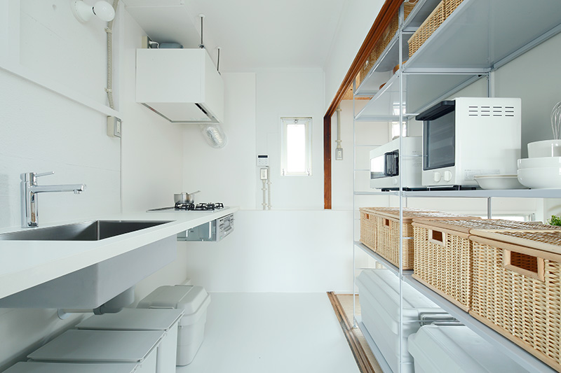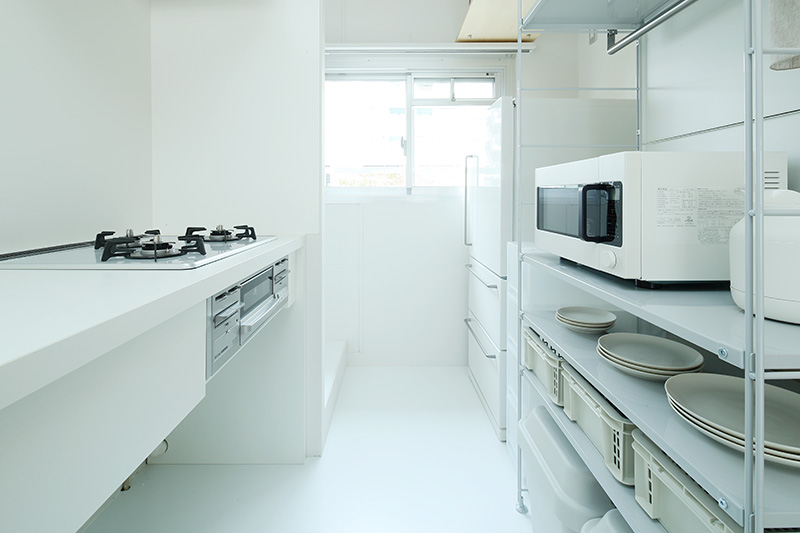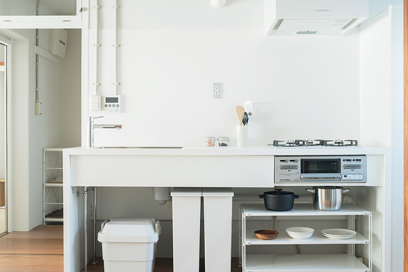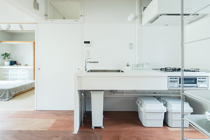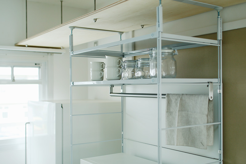 足元をオープンにした持出しキッチン。台の下には、好みの収納を設えることができます。