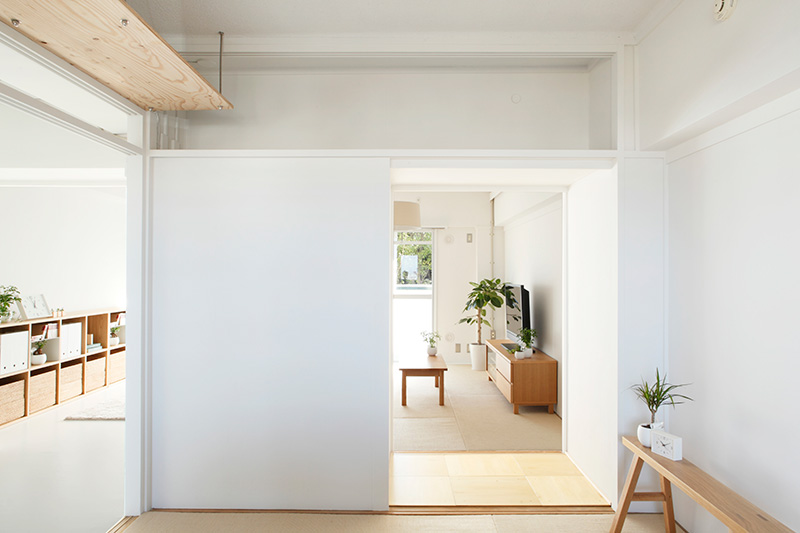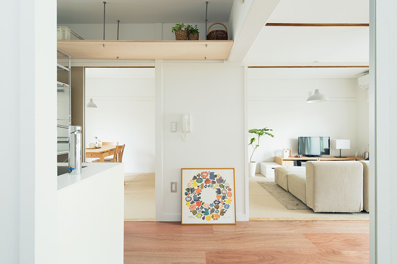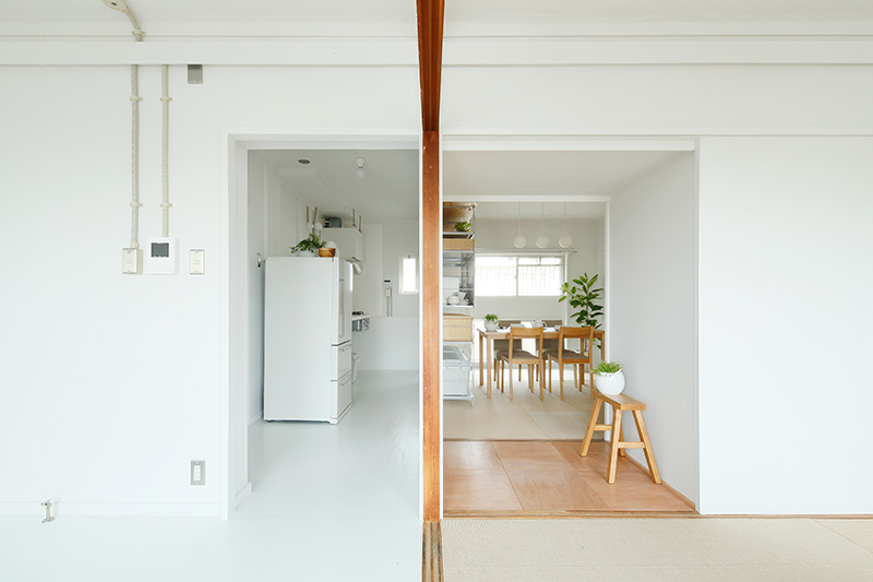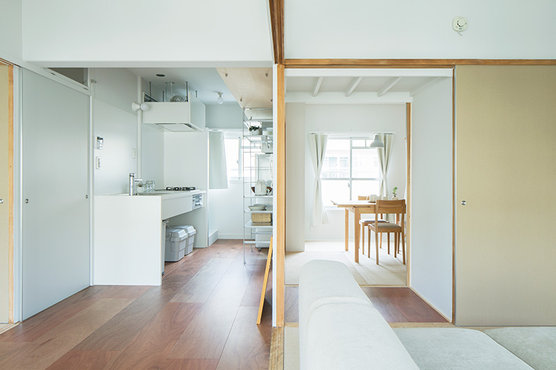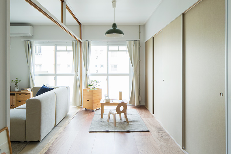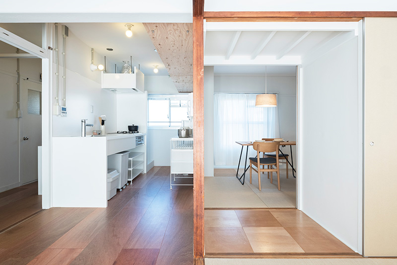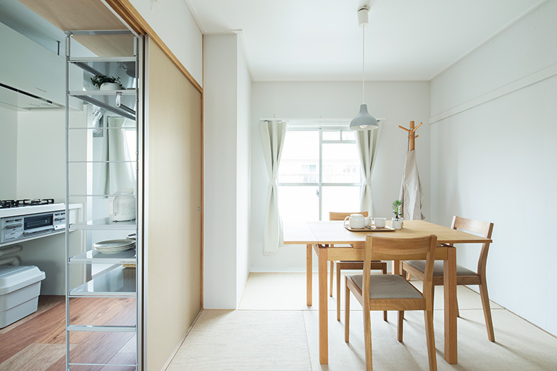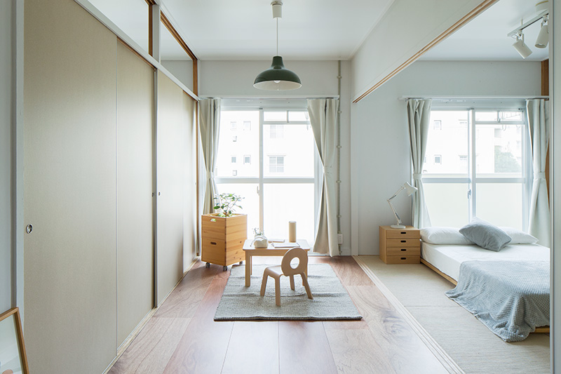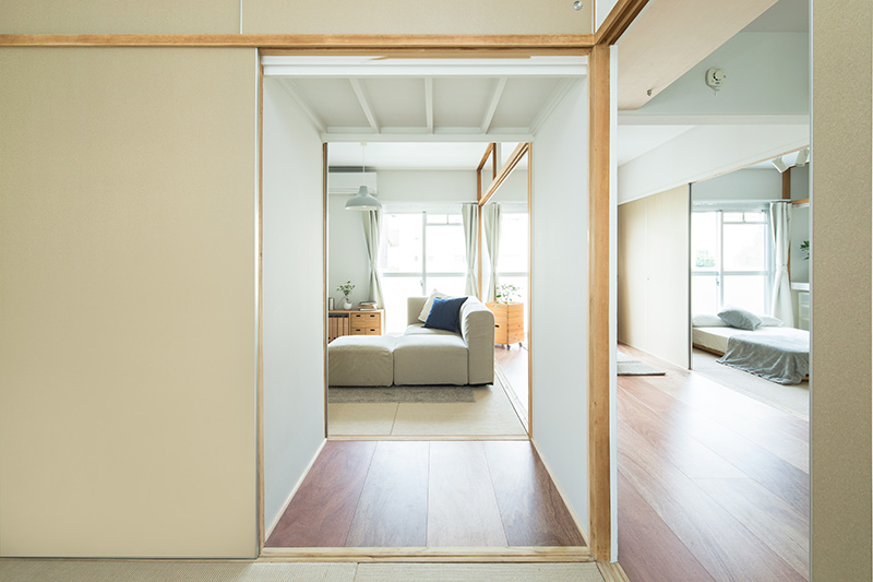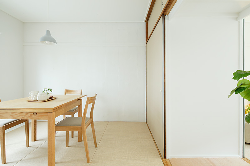もともとあった押入の一部を撤去して、部屋から部屋へと風がぬけるLDK空間になりました。ふすまを閉じると、1LDKから2LDKに間取りが変化します。