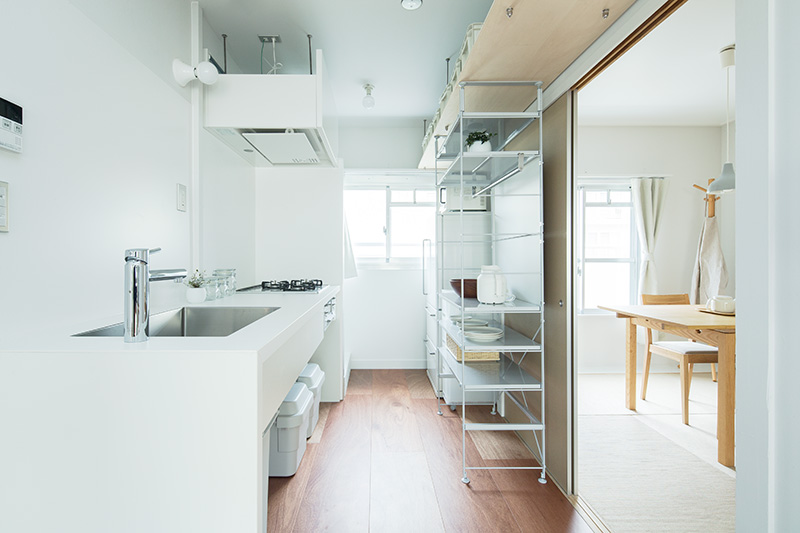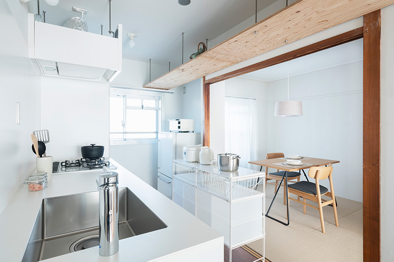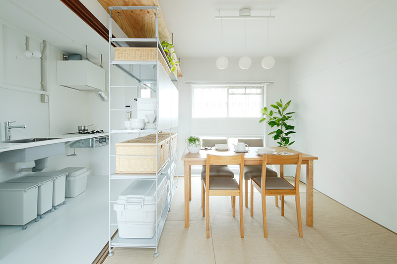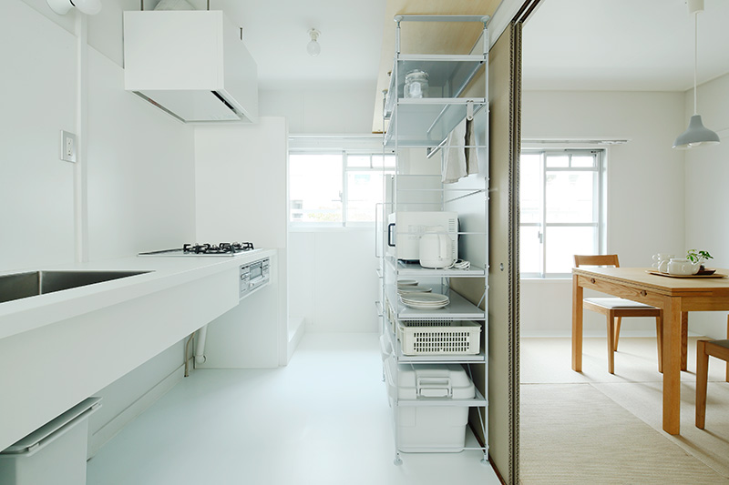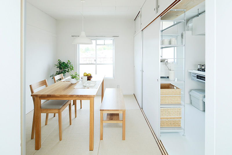 キッチン背面のふすまを開放すれば、ダイニングとして使用できます。ふすまを閉じると、納戸や寝室として使用できます。